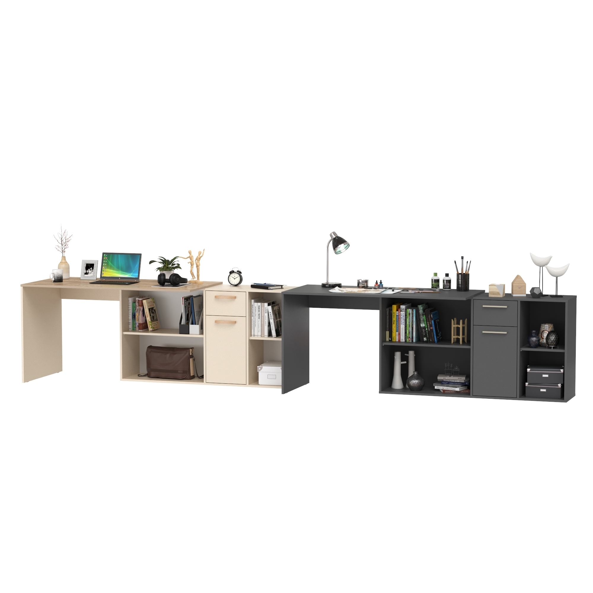 Универсальная сборка позволяет менять стороны расположения тумб и полок, что облегчает интеграцию столов в интерьер любого помещения.