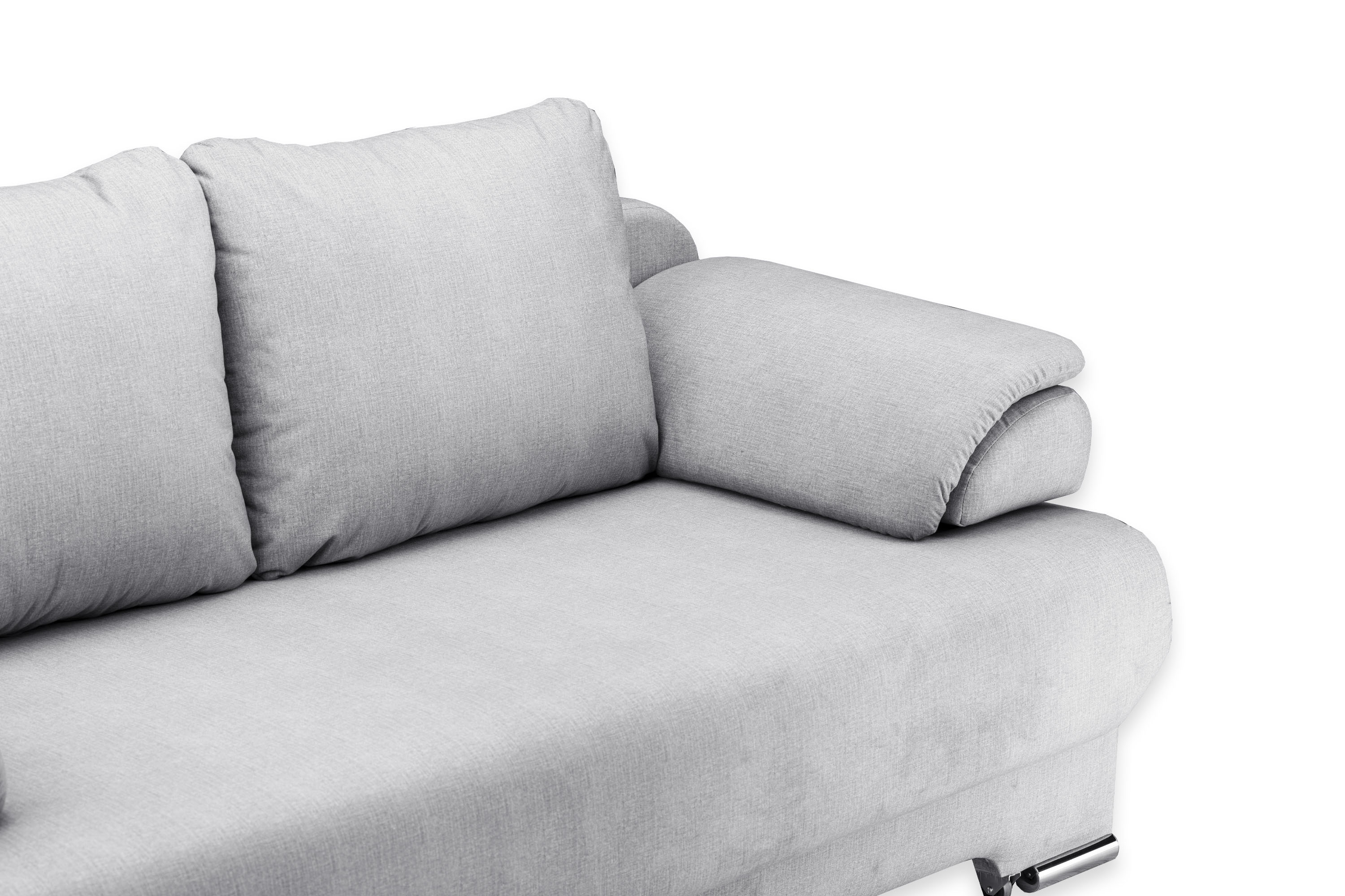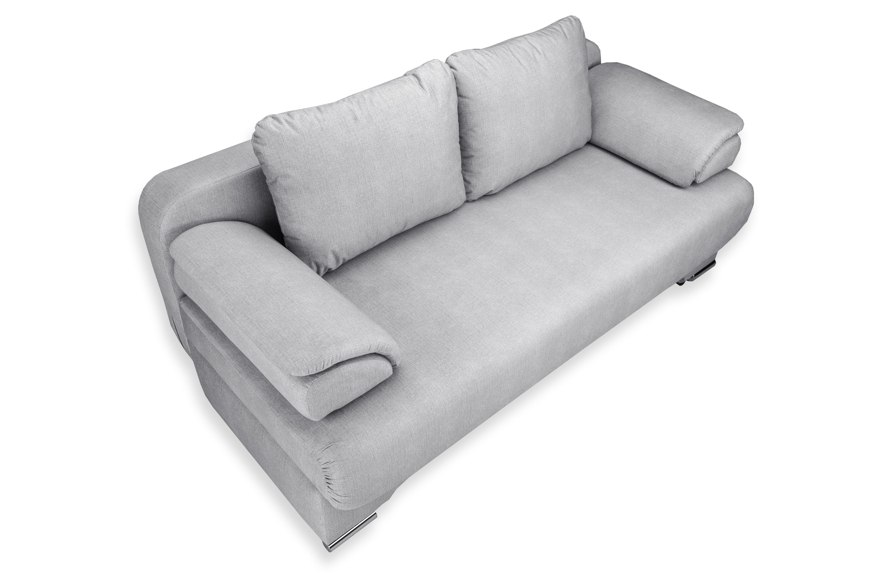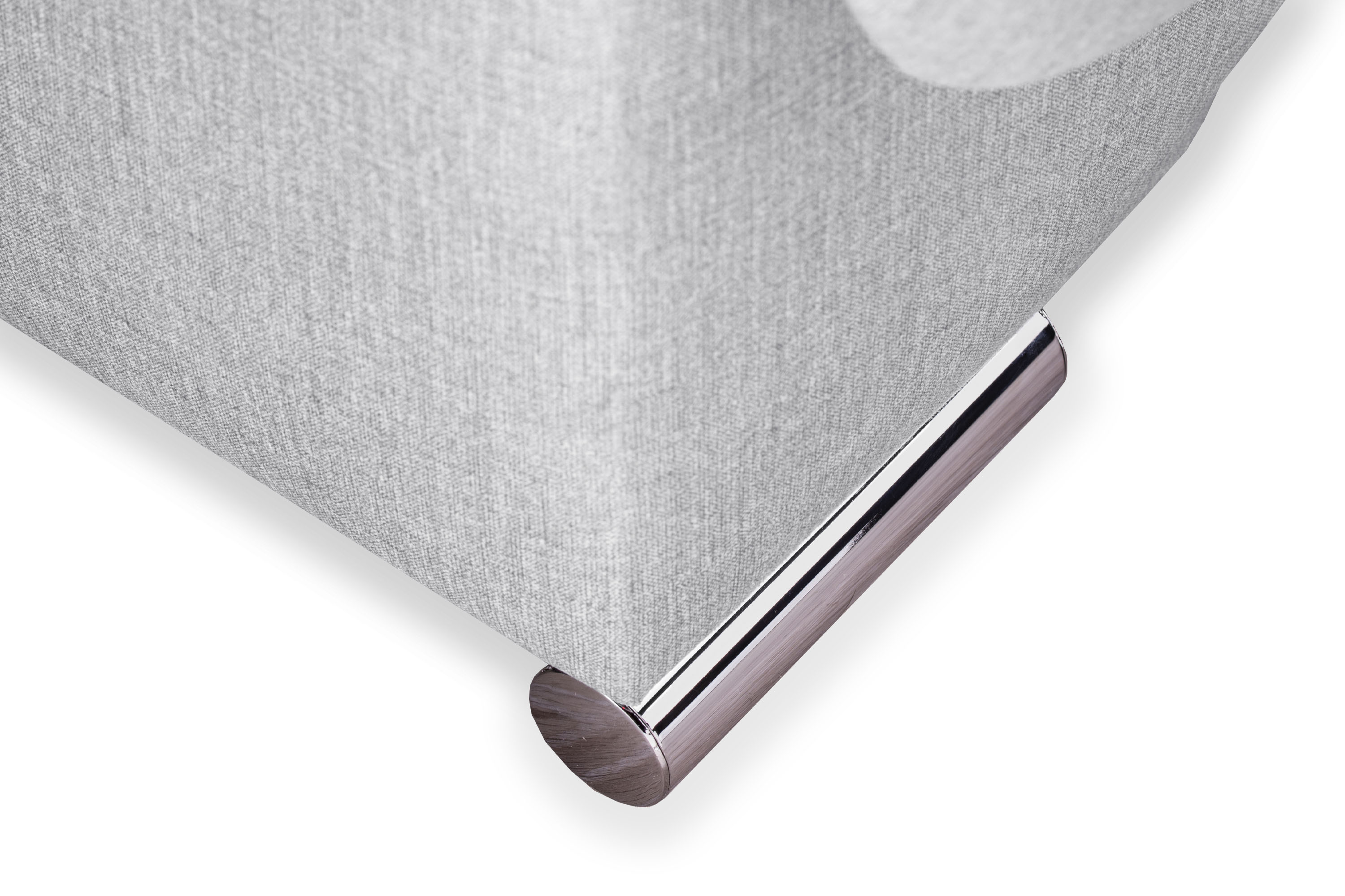 Диван украшен металлическими хромированными опорами.