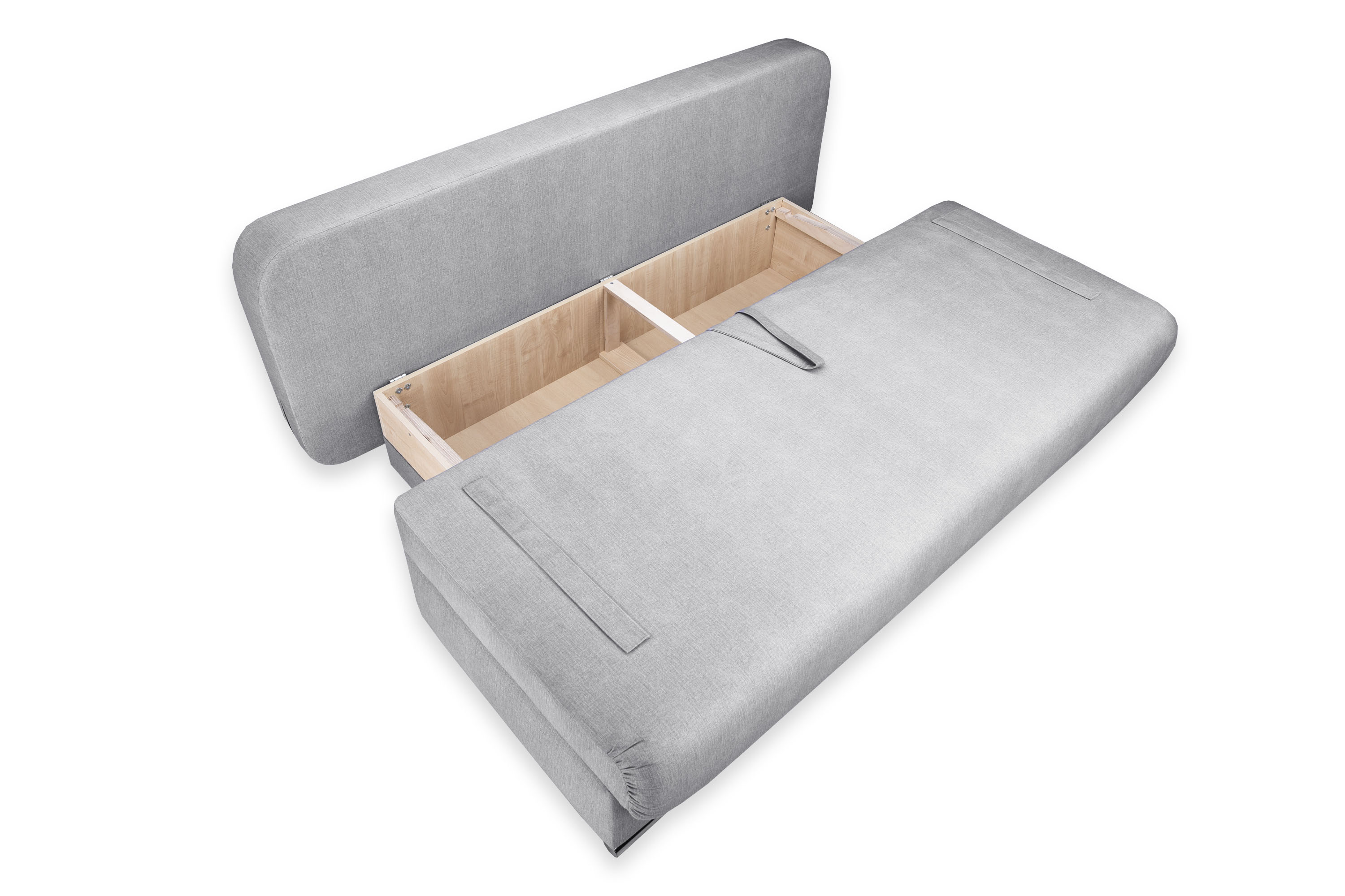 Диван-кровать «Биг-бен Стандарт» трансформируется из положения диван в кровать с помощью механизма раскладывания Еврокнижка. Для того, чтобы разложить диван, нужно потянуть петлю сиденья на себя, затем опустить спинку дивана на ящик.
