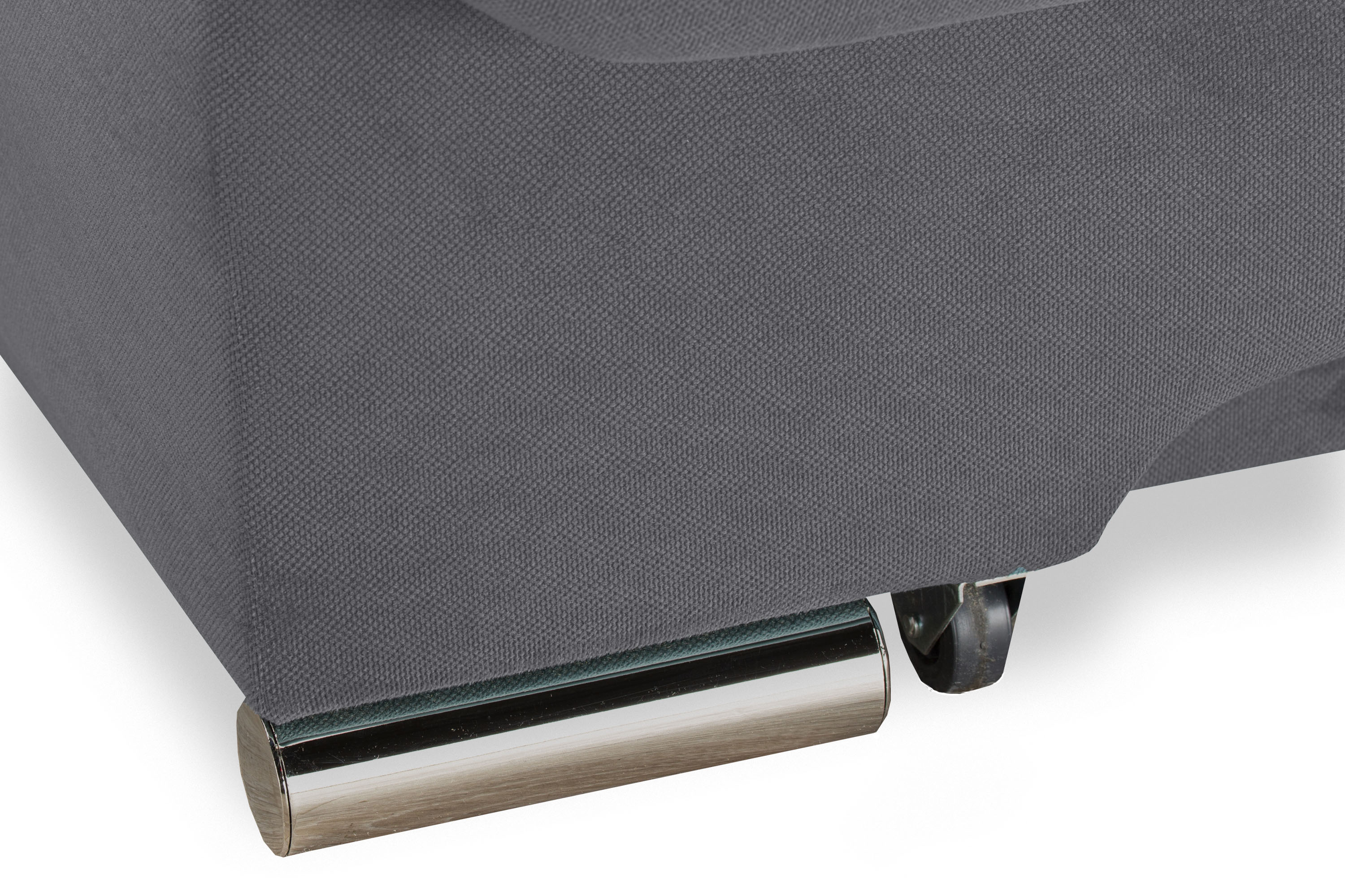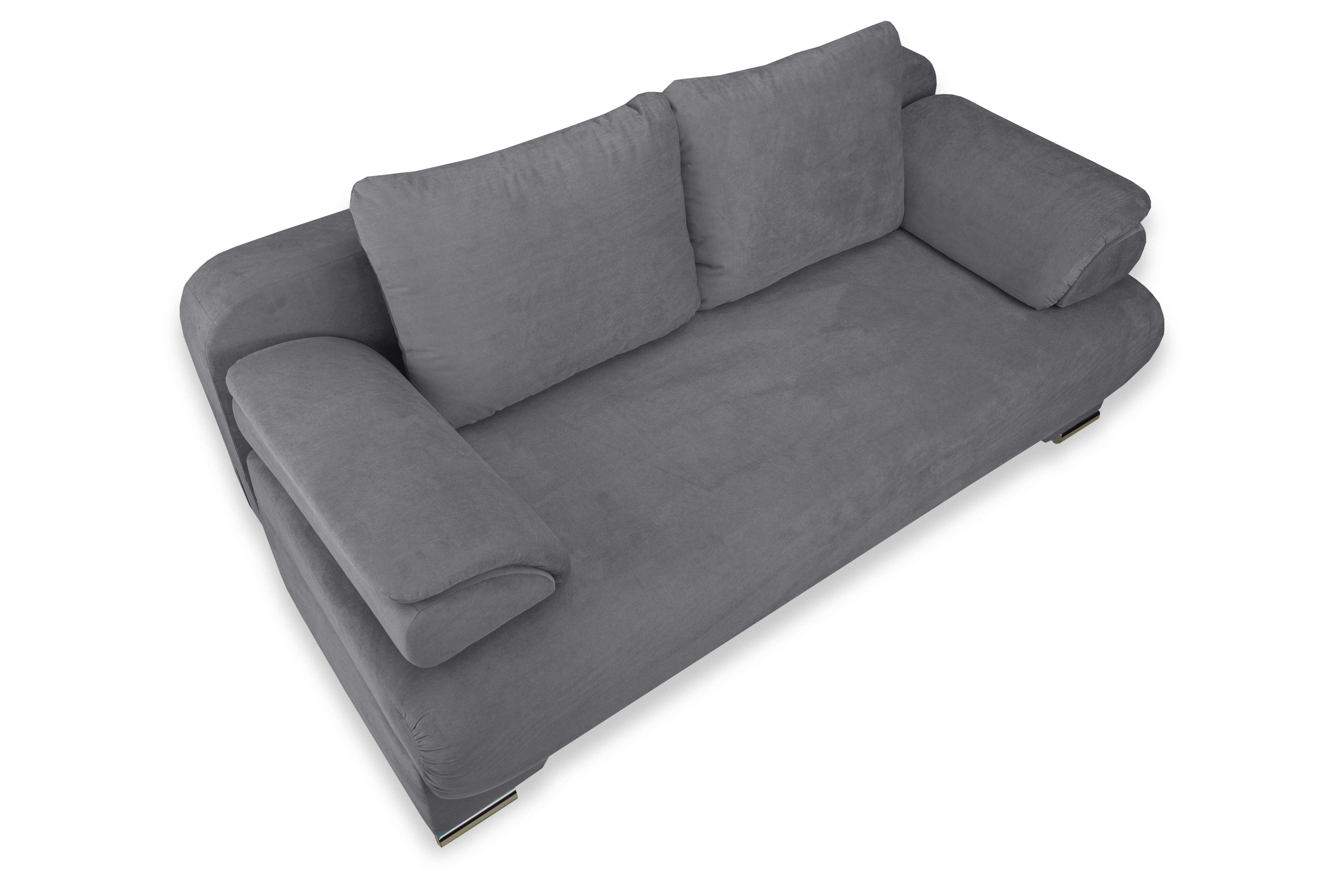 Диван украшен металлическими хромированными опорами.
