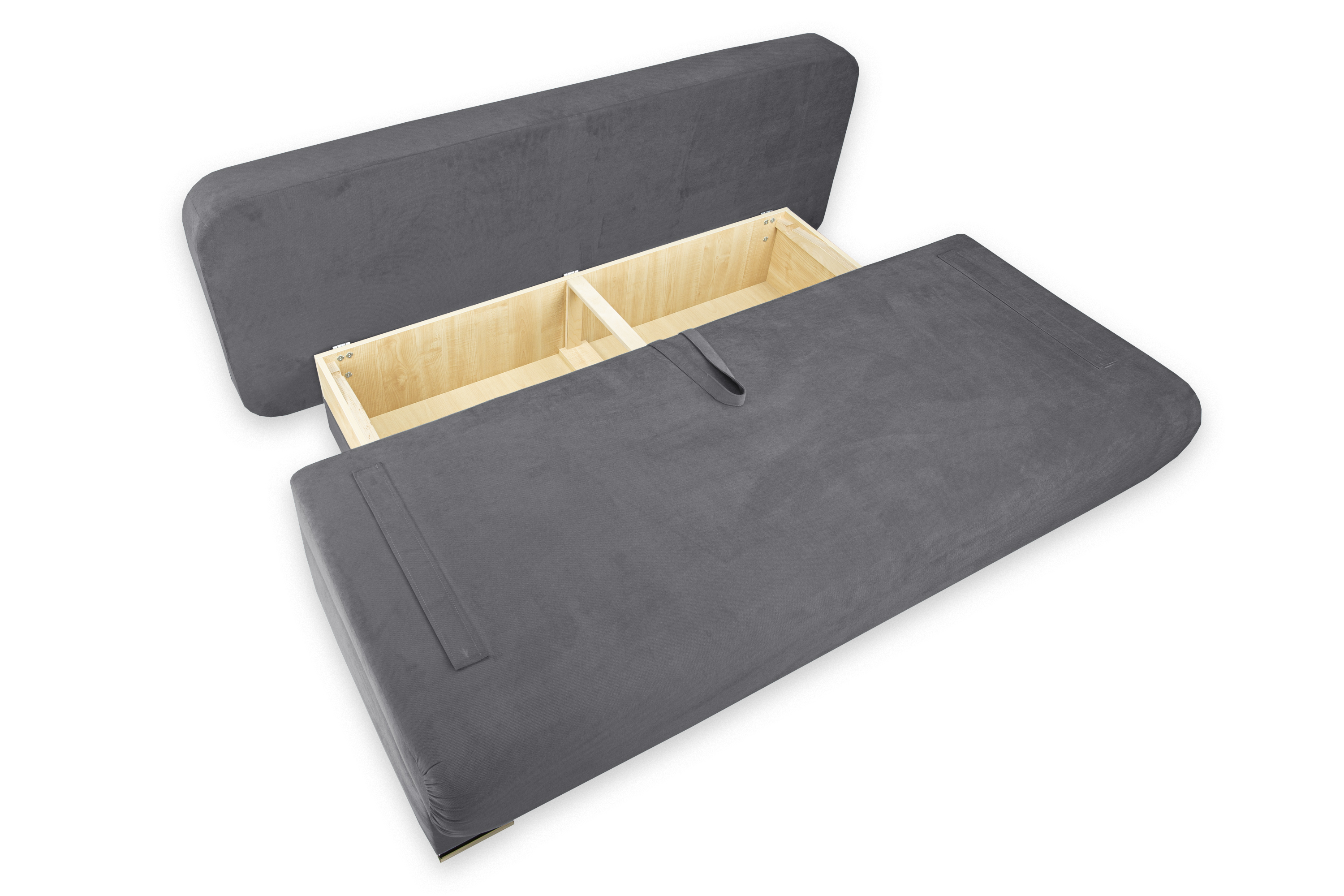 Диван-кровать «Биг-бен Стандарт» трансформируется из положения диван в кровать с помощью механизма раскладывания Еврокнижка. Для того, чтобы разложить диван, нужно потянуть петлю сиденья на себя, затем опустить спинку дивана на ящик.
