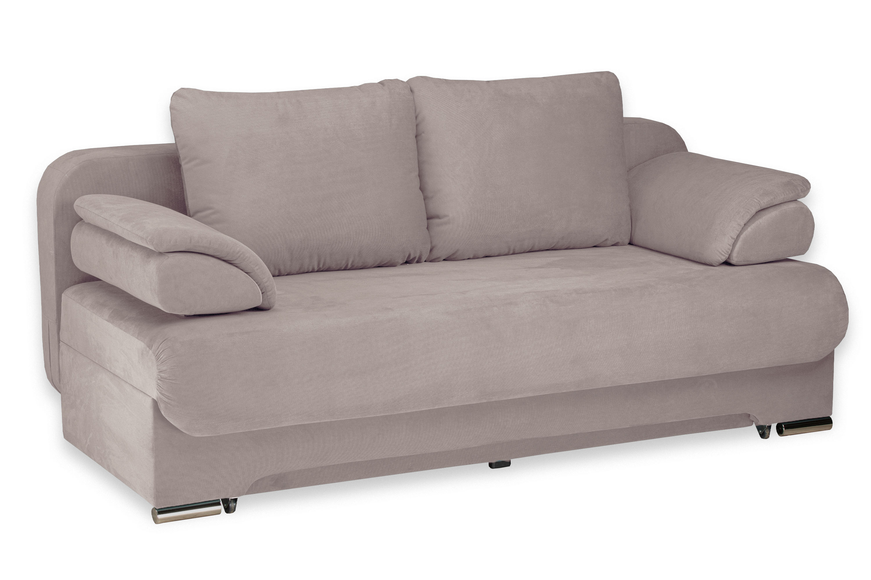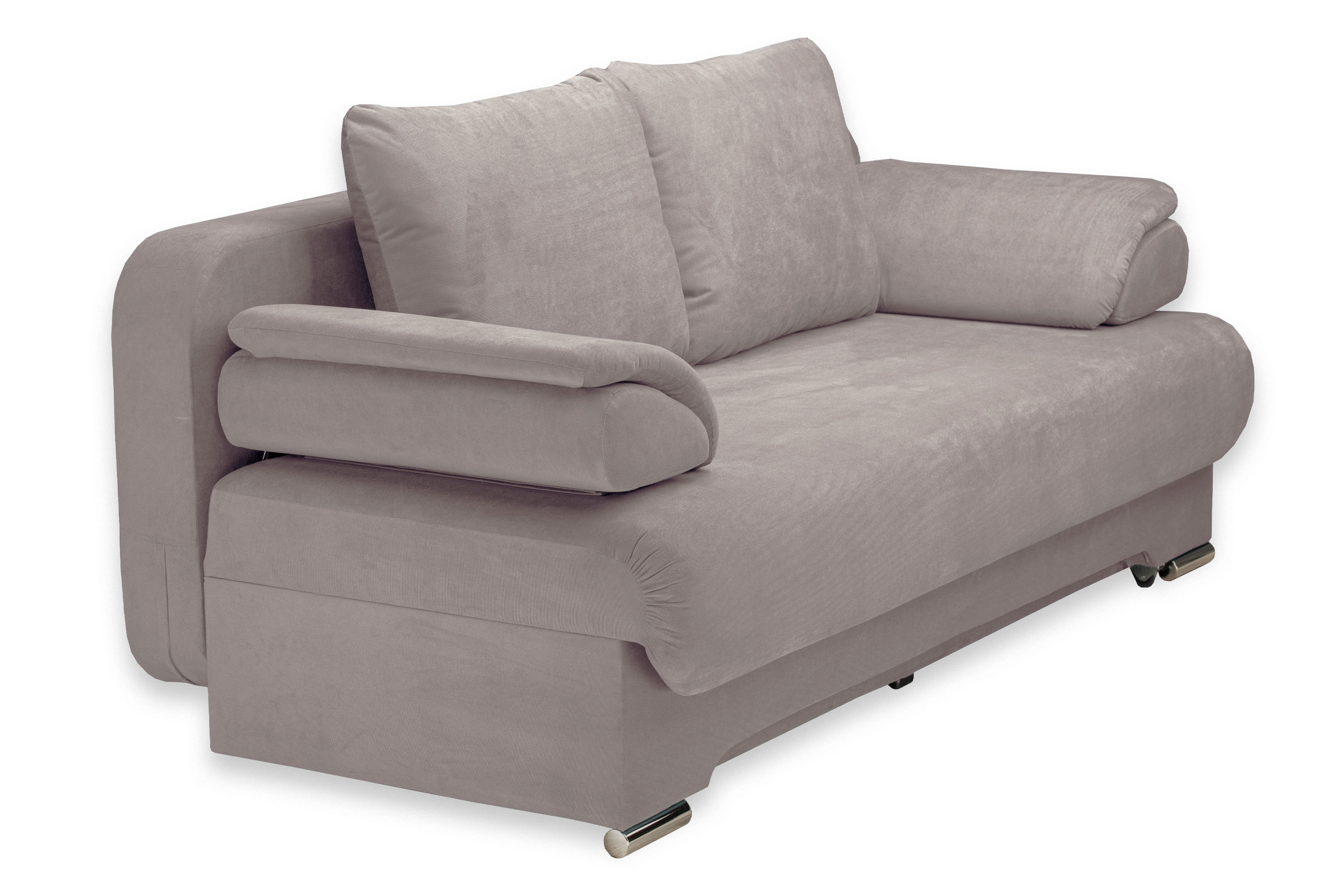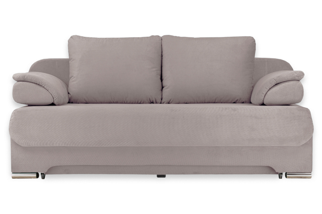 Диван украшен металлическими хромированными опорами.