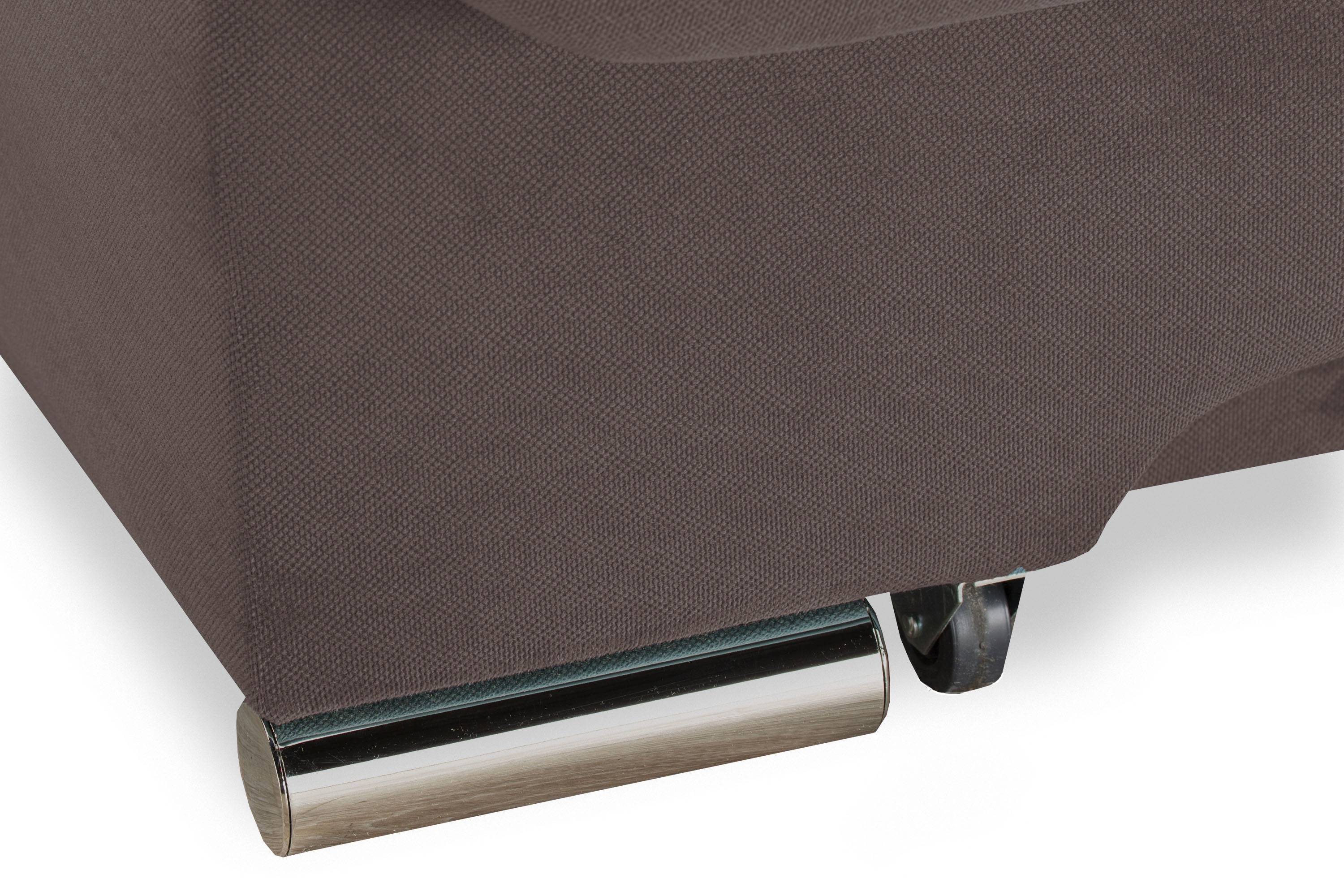 Диван украшен металлическими хромированными опорами.