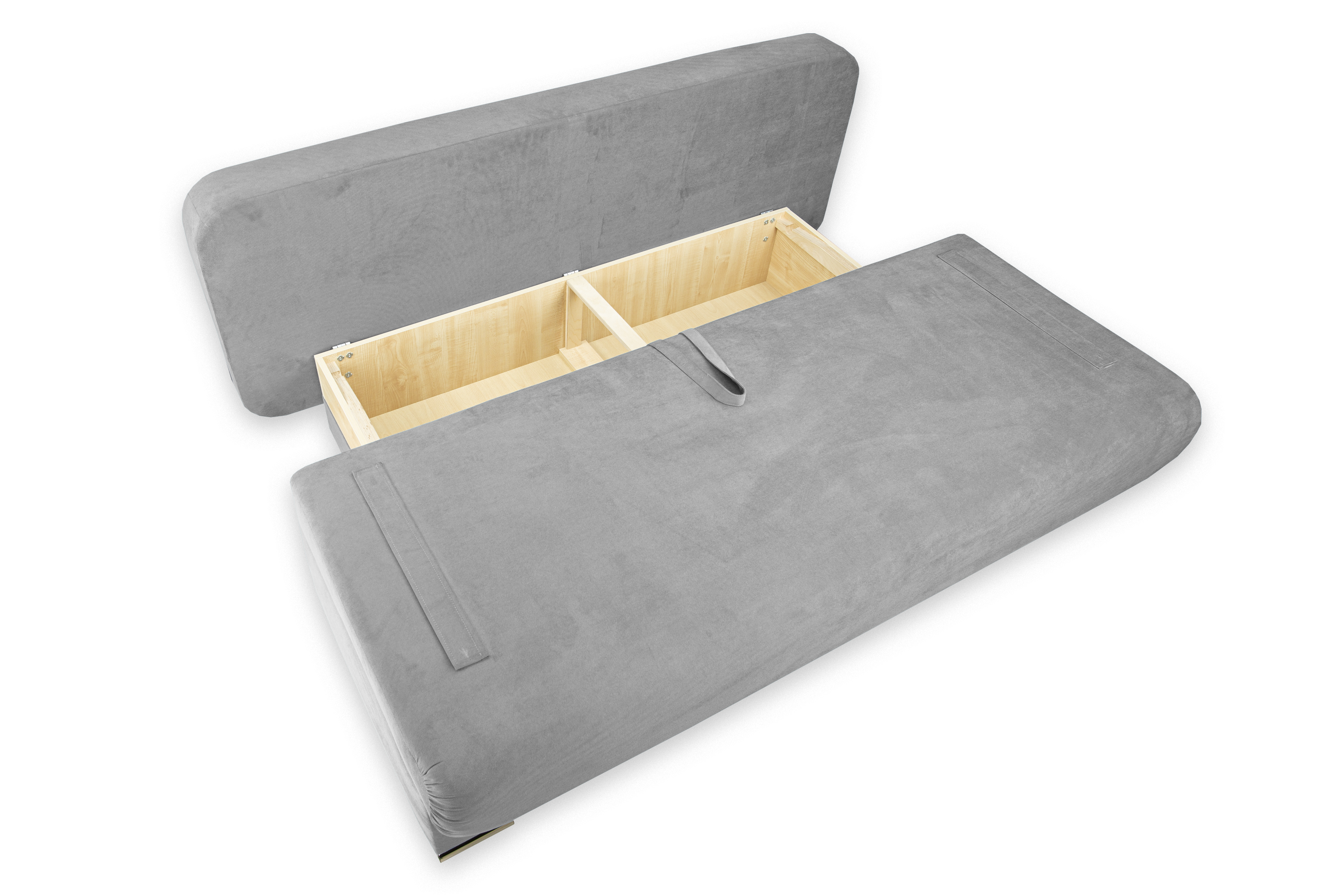 Диван-кровать «Биг-бен Стандарт» трансформируется из положения диван в кровать с помощью механизма раскладывания Еврокнижка. Для того, чтобы разложить диван, нужно потянуть петлю сиденья на себя, затем опустить спинку дивана на ящик.