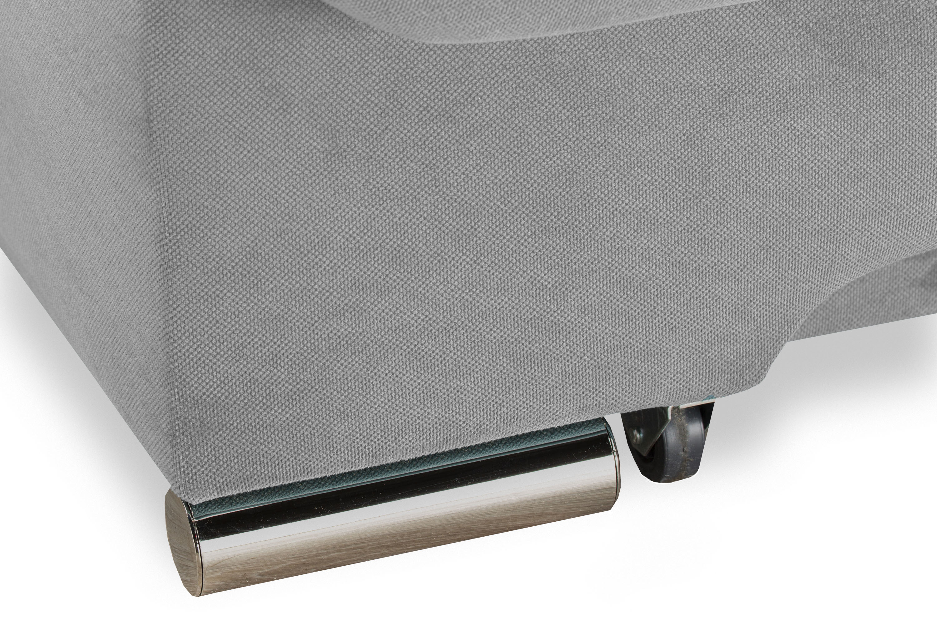 Диван украшен металлическими хромированными опорами.