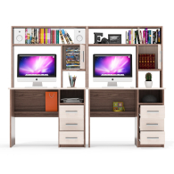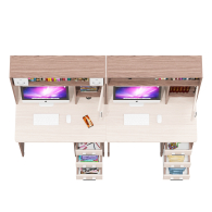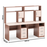 Каждый стол выполнен в классическом компактном варианте, оснащен удобной столешницей, надстройкой с нишей для монитора и тумбой с ящиками. Вместительная столешница легко разместит ноутбук или монитор с клавиатурой, оставляя достаточно места для учебных пособий и канцелярии. Под столешницей расположены две открытые ниши, которые предоставляют удобный доступ к самым важным предметам и место для системного блока. Столы не имеют универсальной сборки - справа у столов расположена тумба с тремя вместительными выдвижными ящиками, для хранения книг, канцелярии и деловых бумаг. Надстройка каждого стола с нишей под монитор диагональю до 27 дюймов (размер ниши 65х70х57 см) обеспечивает безопасность техники и организацию пространства для комфортной работы. Верхняя полка и боковые ниши надстройки отлично подходят для хранения справочников, учебников и других необходимых вещей.