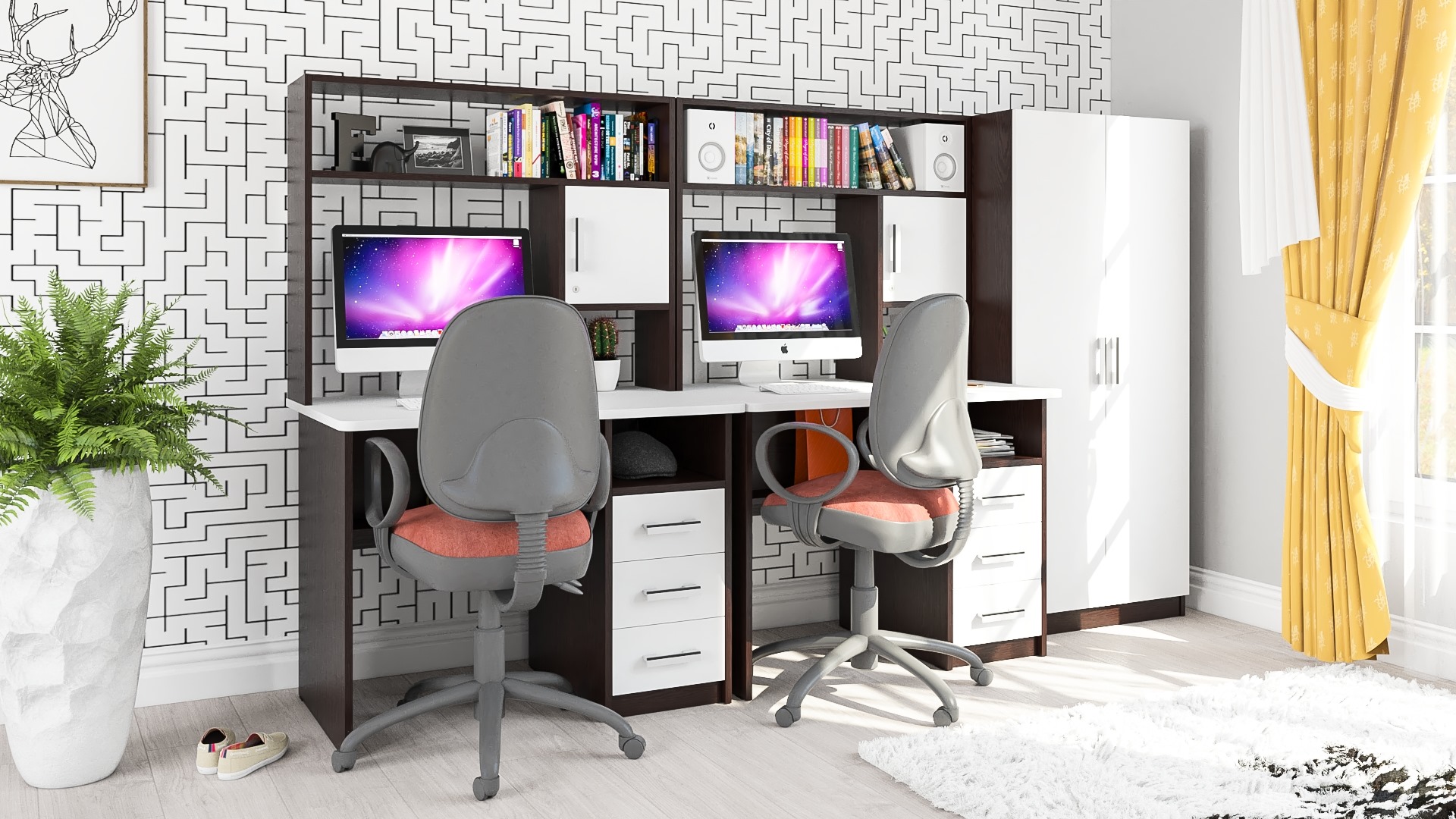 Место для учёбы для двоих детей СК-9 представляют собой не только комфортное рабочее пространство для двоих, но и могут заменить компактную стенку в детской комнате или кабинете.
