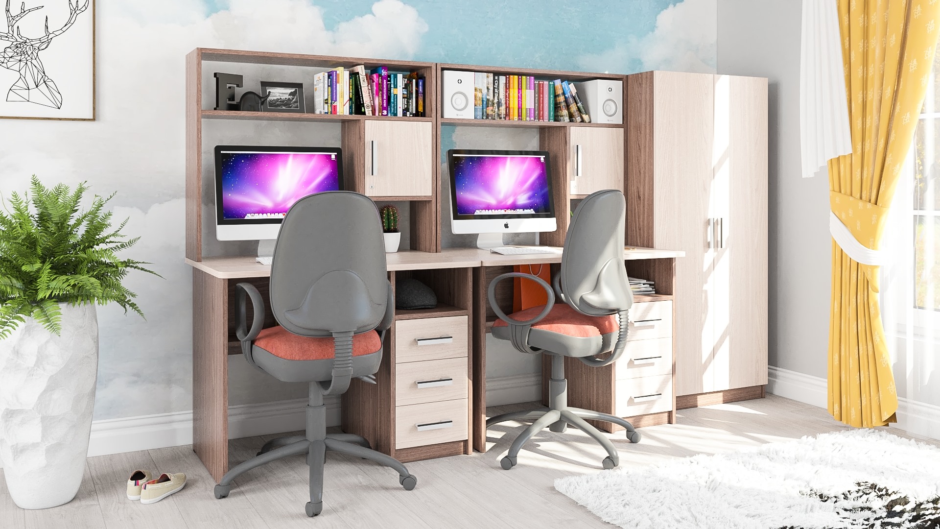 Место для учёбы для двоих детей СК-9 представляют собой не только комфортное рабочее пространство для двоих, но и могут заменить компактную стенку в детской комнате или кабинете.