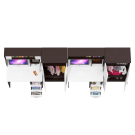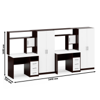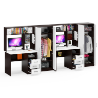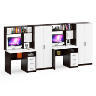 Размещение модулей друг относительно друга Вы выбираете по своему вкусу. Столы и шкафы могут поменяться местами по Вашему желанию. Каждый стол выполнен в классическом компактном варианте, оснащен удобной столешницей, надстройкой с нишей для монитора и тумбой с ящиками. Вместительная столешница легко разместит ноутбук или монитор с клавиатурой, оставляя достаточно места для учебных пособий и канцелярии. Под столешницей расположены две открытые ниши, которые предоставляют удобный доступ к самым важным предметам и место для системного блока. Столы не имеют универсальной сборки - справа у столов расположена тумба с тремя вместительными выдвижными ящиками, для хранения книг, канцелярии и деловых бумаг. Надстройка каждого стола с нишей под монитор диагональю до 27 дюймов (размер ниши 65х70х57 см) обеспечивает безопасность техники и организацию пространства для комфортной работы. Верхняя полка и боковые ниши надстройки отлично подходят для хранения справочников, учебников и других необходимых вещей.