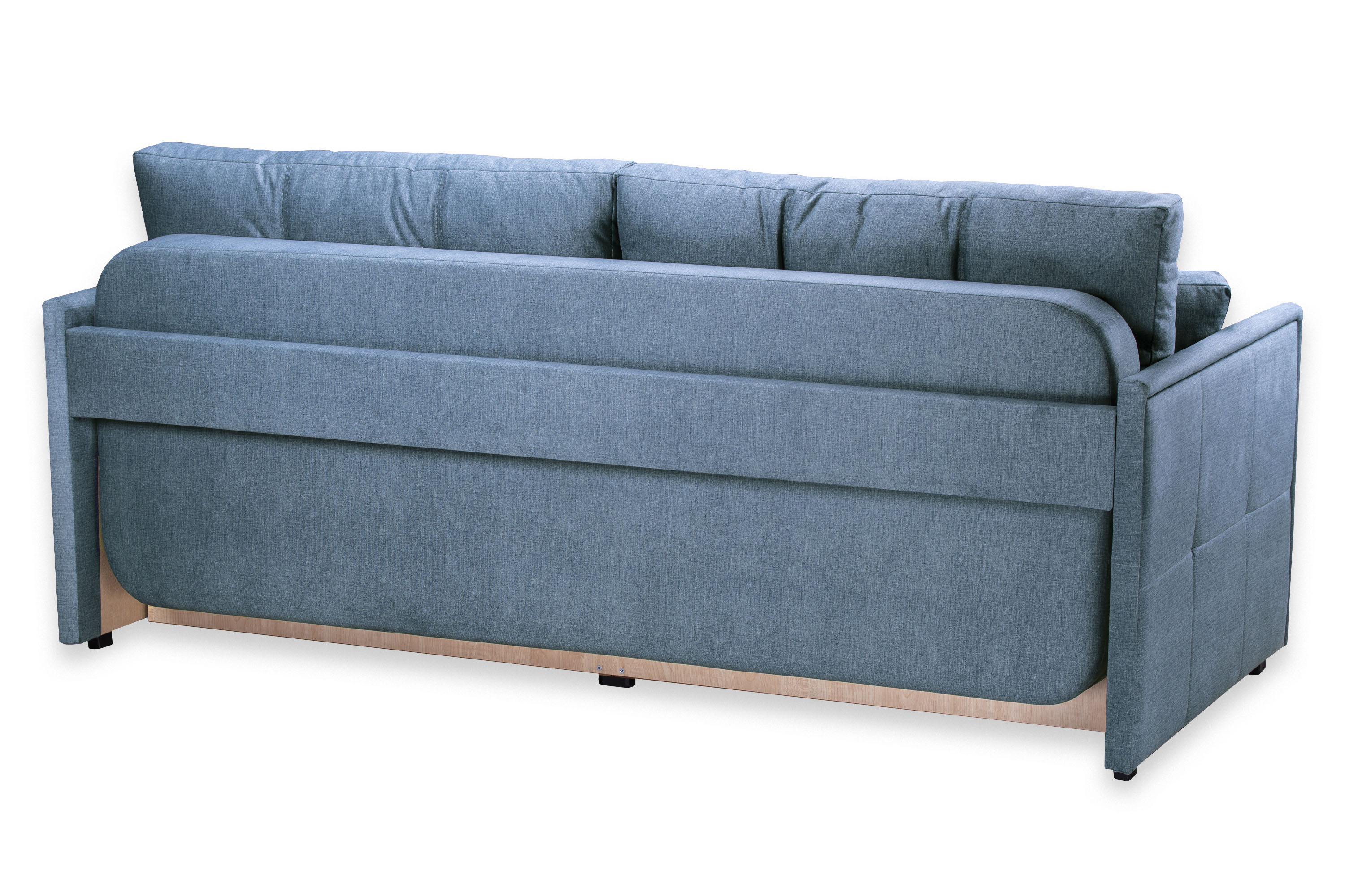 Каркас изготовлен из березовой фанеры, ламината, бруса. Задняя планка, соединяющая подлокотники, дает каркасу дивана дополнительную жесткость.