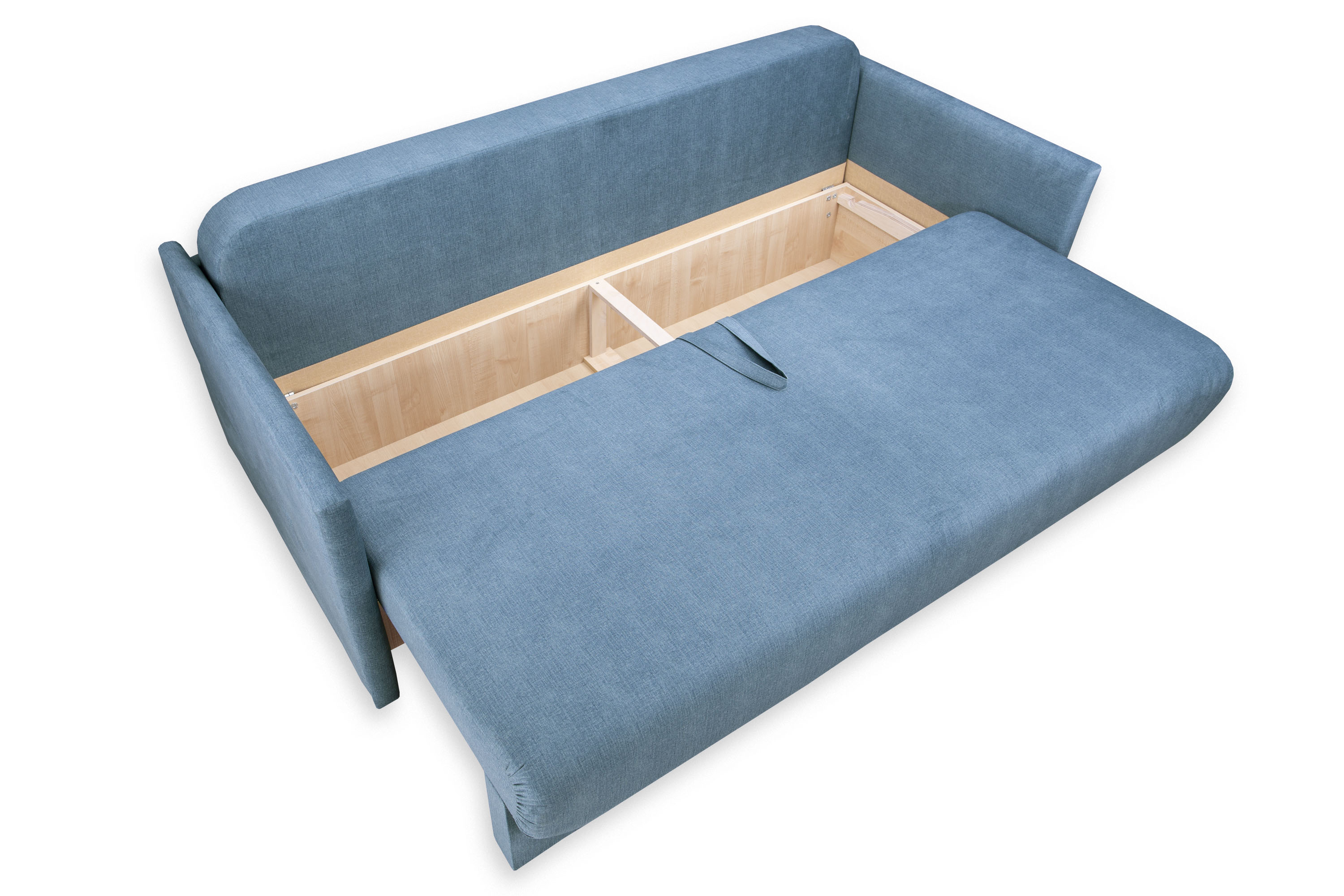 Диван-кровать «Шерлок Стандарт» трансформируется из положения диван в кровать с помощью механизма раскладывания Еврокнижка. Для того, чтобы разложить диван, нужно потянуть петлю сиденья на себя, затем опустить спинку дивана на ящик.