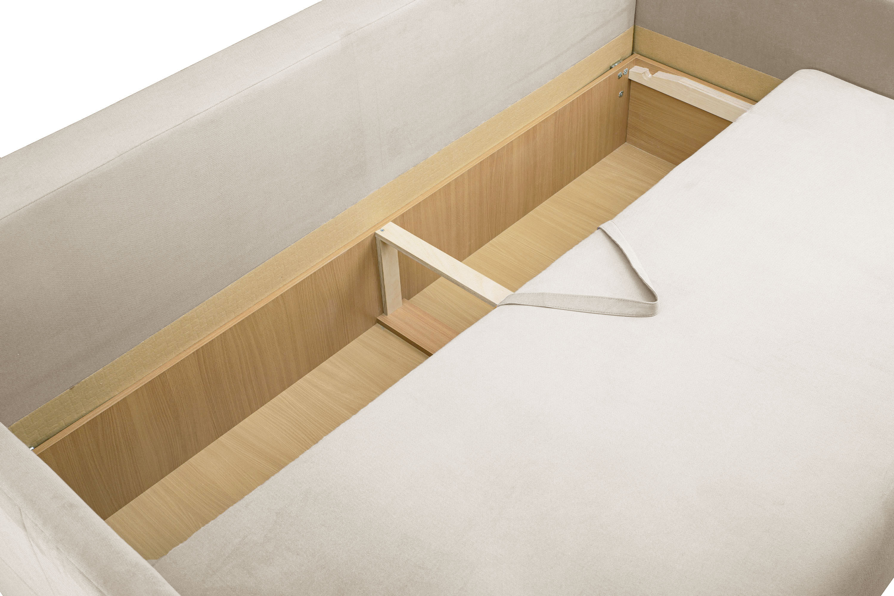 Диван-кровать «Шерлок Стандарт» трансформируется из положения диван в кровать с помощью механизма раскладывания Еврокнижка. Для того, чтобы разложить диван, нужно потянуть петлю сиденья на себя, затем опустить спинку дивана на ящик.