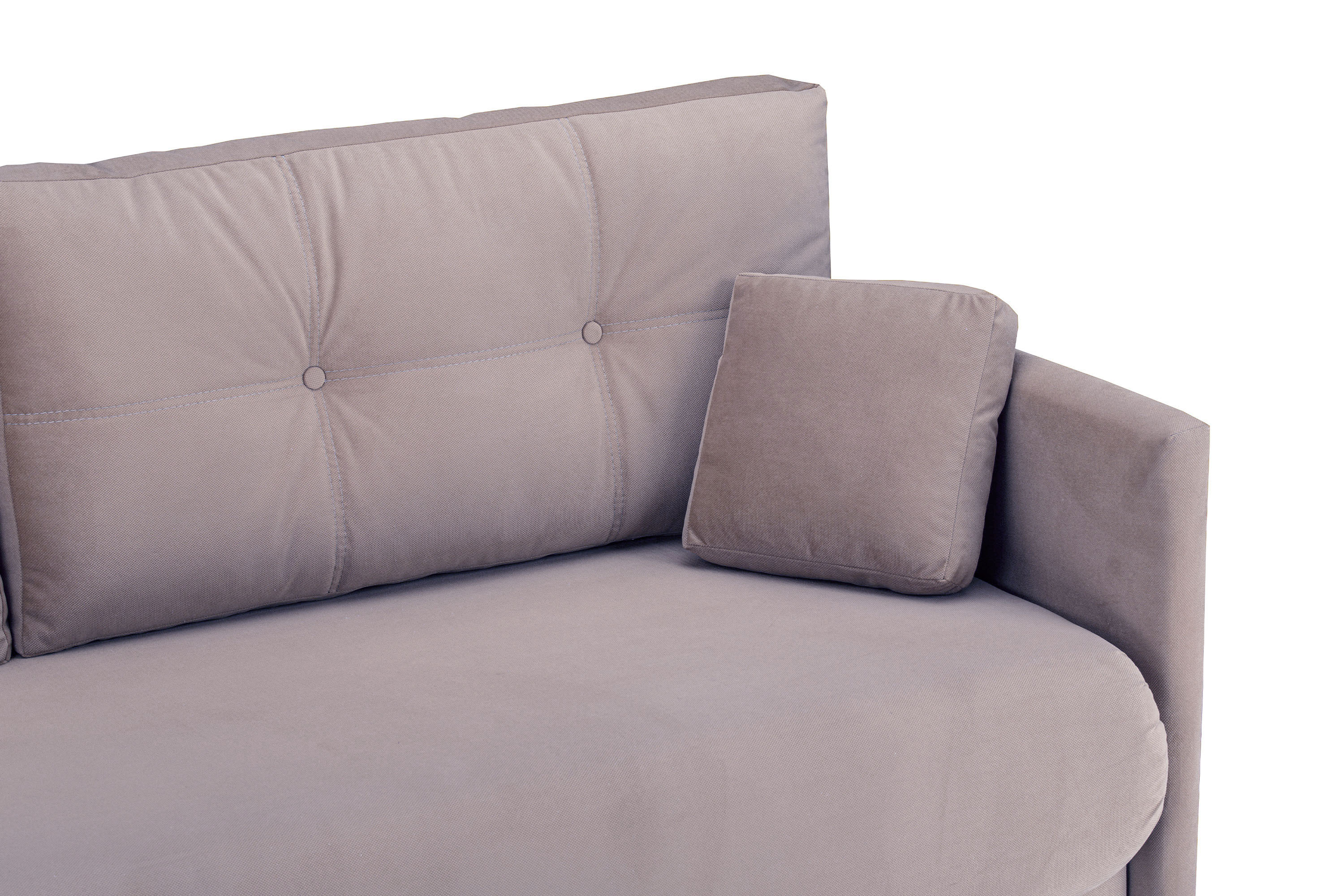 Приспинные подушки украшены пуговицами и двойной прострочкой.