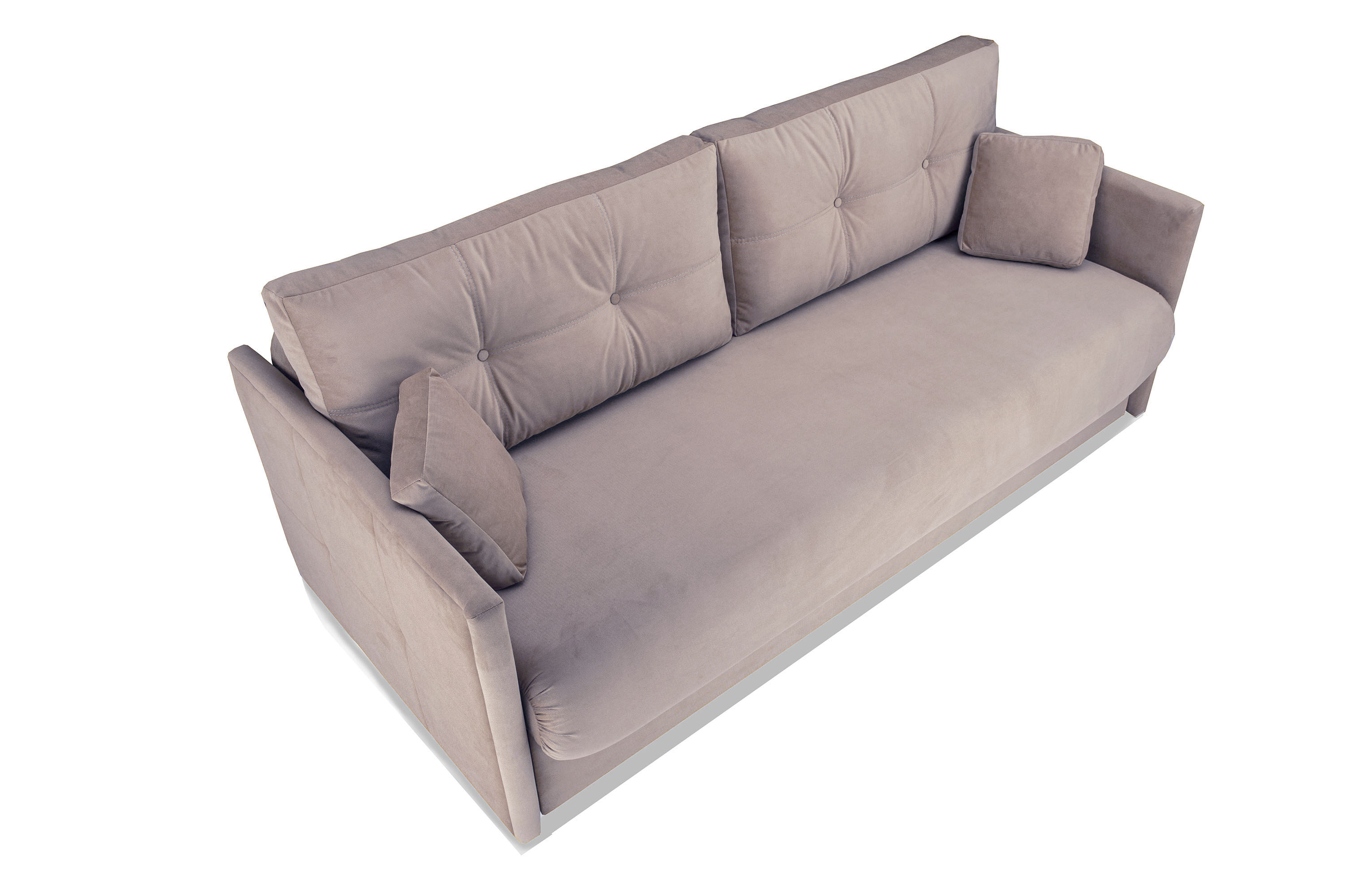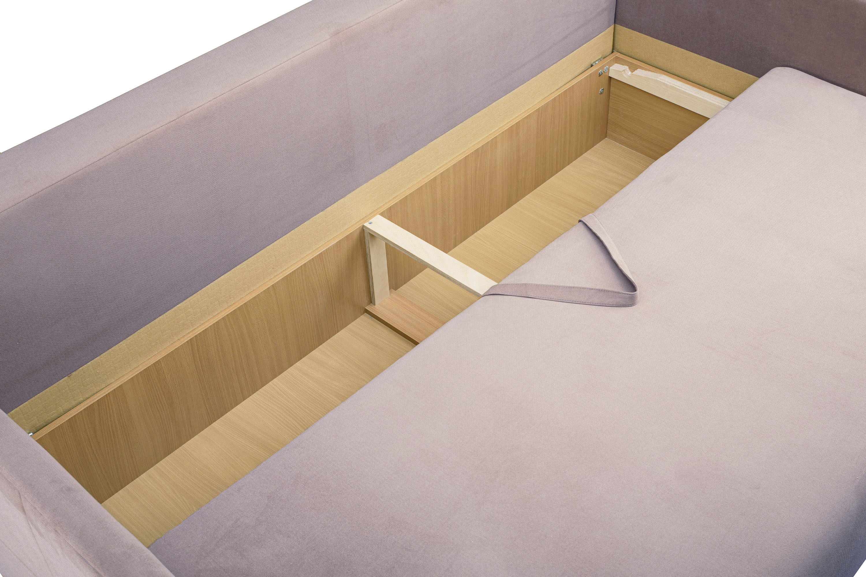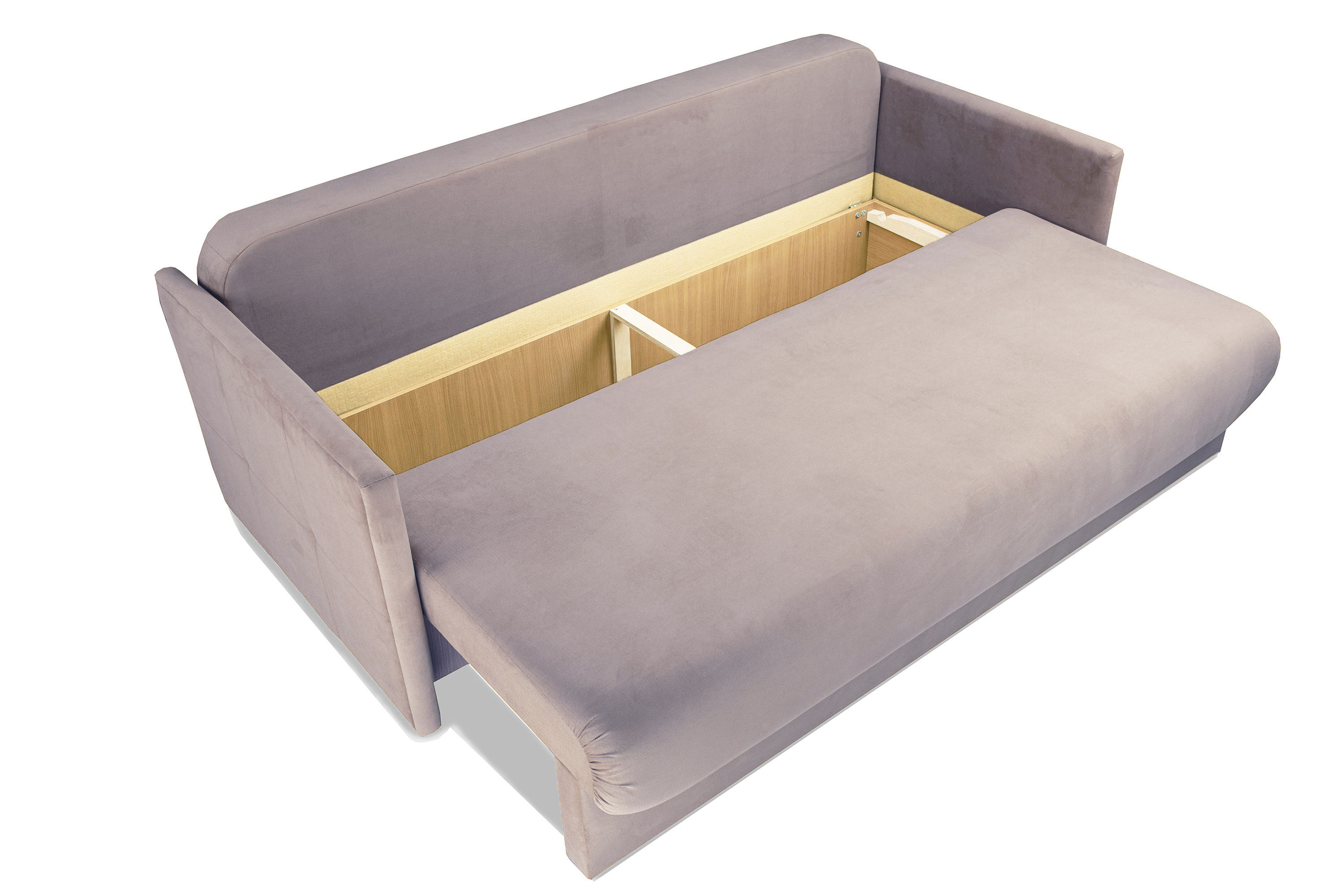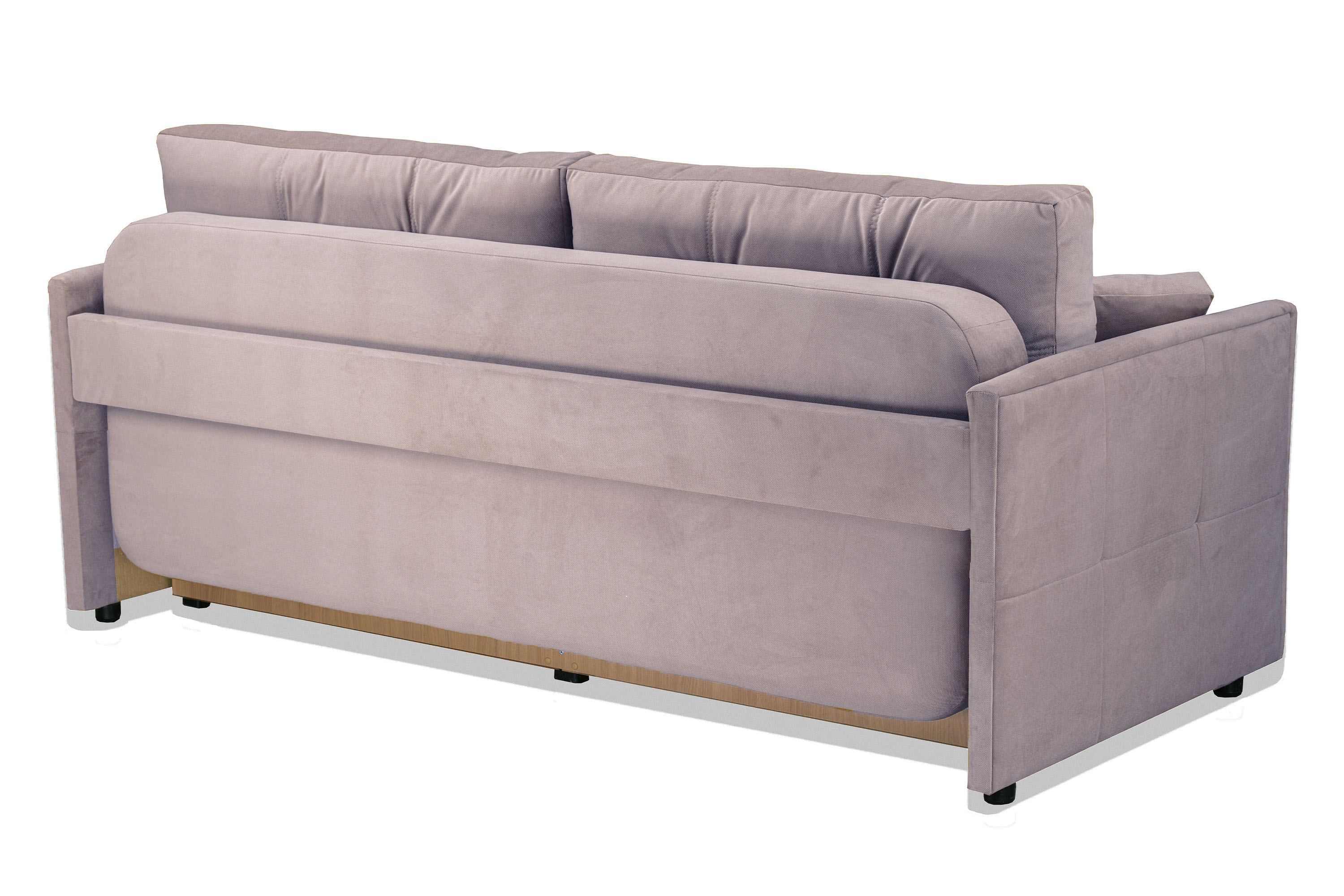 Каркас изготовлен из березовой фанеры, ламината, бруса. Задняя планка, соединяющая подлокотники, дает каркасу дивана дополнительную жесткость.