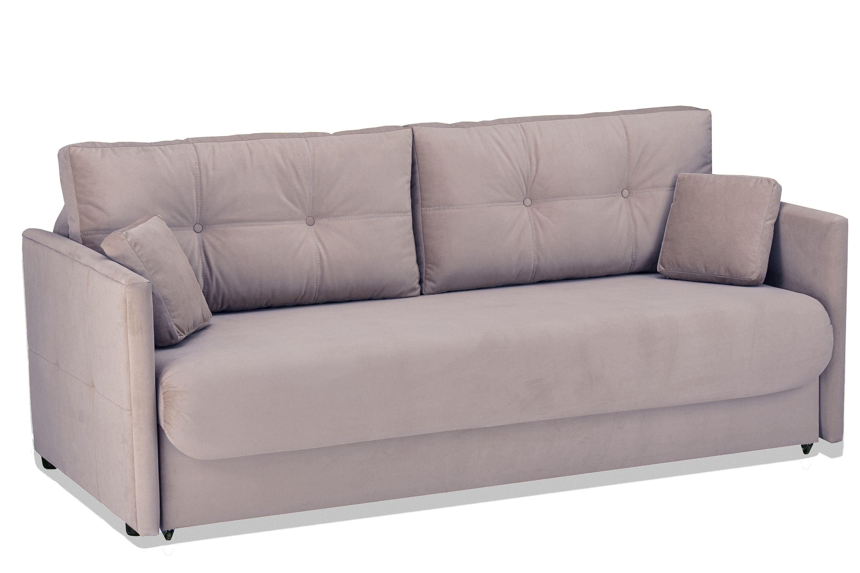 Диван-кровать «Шерлок Стандарт» трансформируется из положения диван в кровать с помощью механизма раскладывания Еврокнижка. Для того, чтобы разложить диван, нужно потянуть петлю сиденья на себя, затем опустить спинку дивана на ящик.
