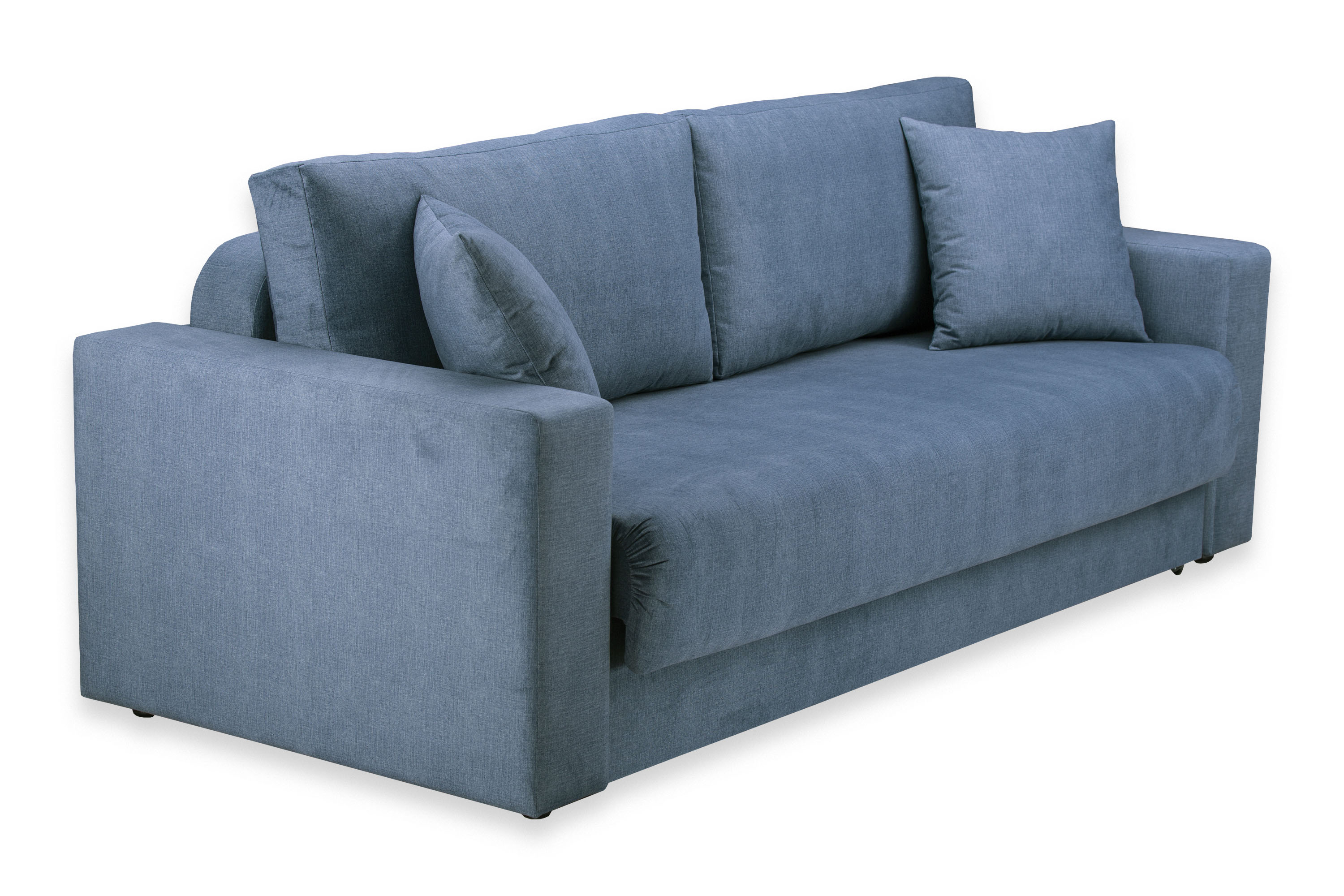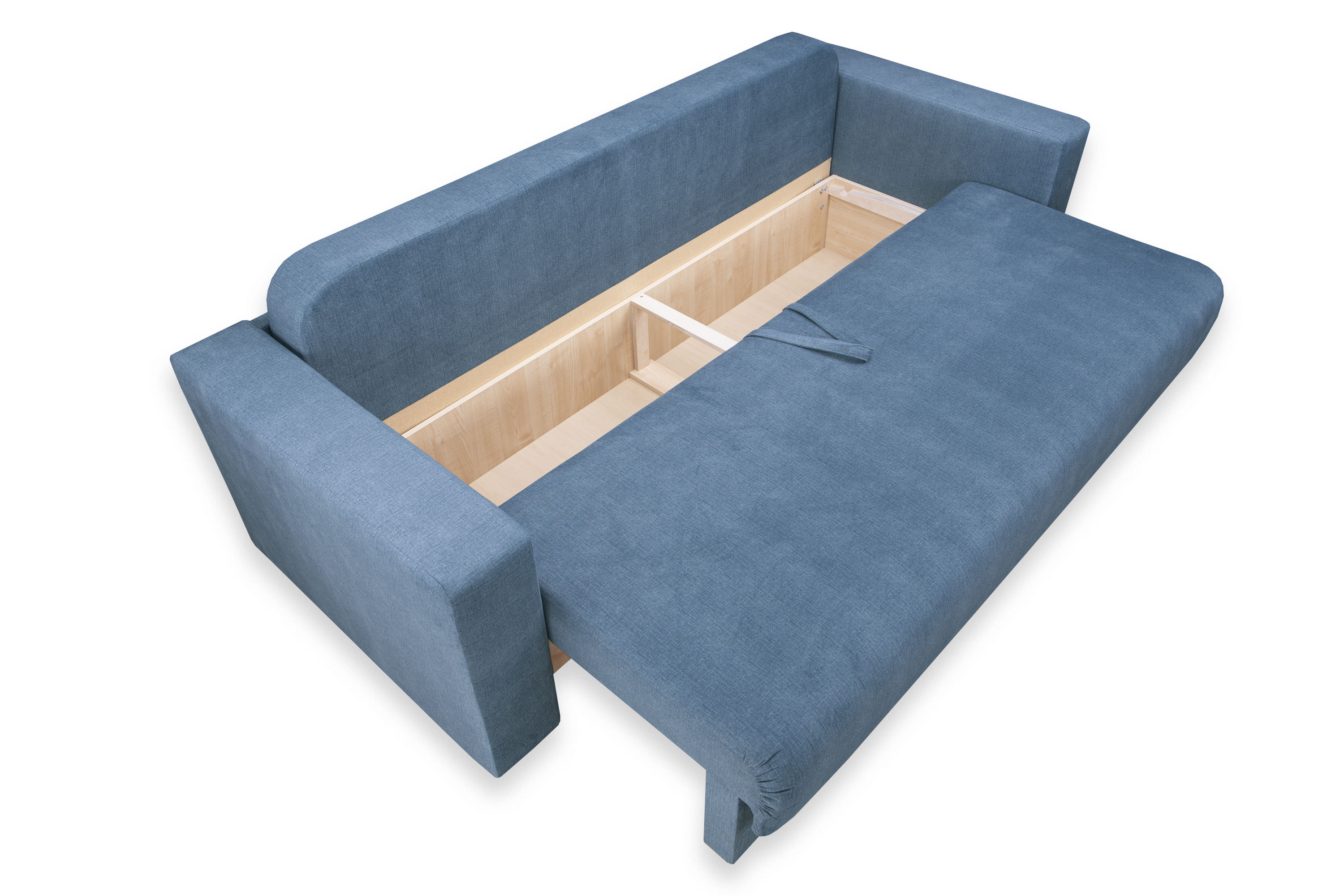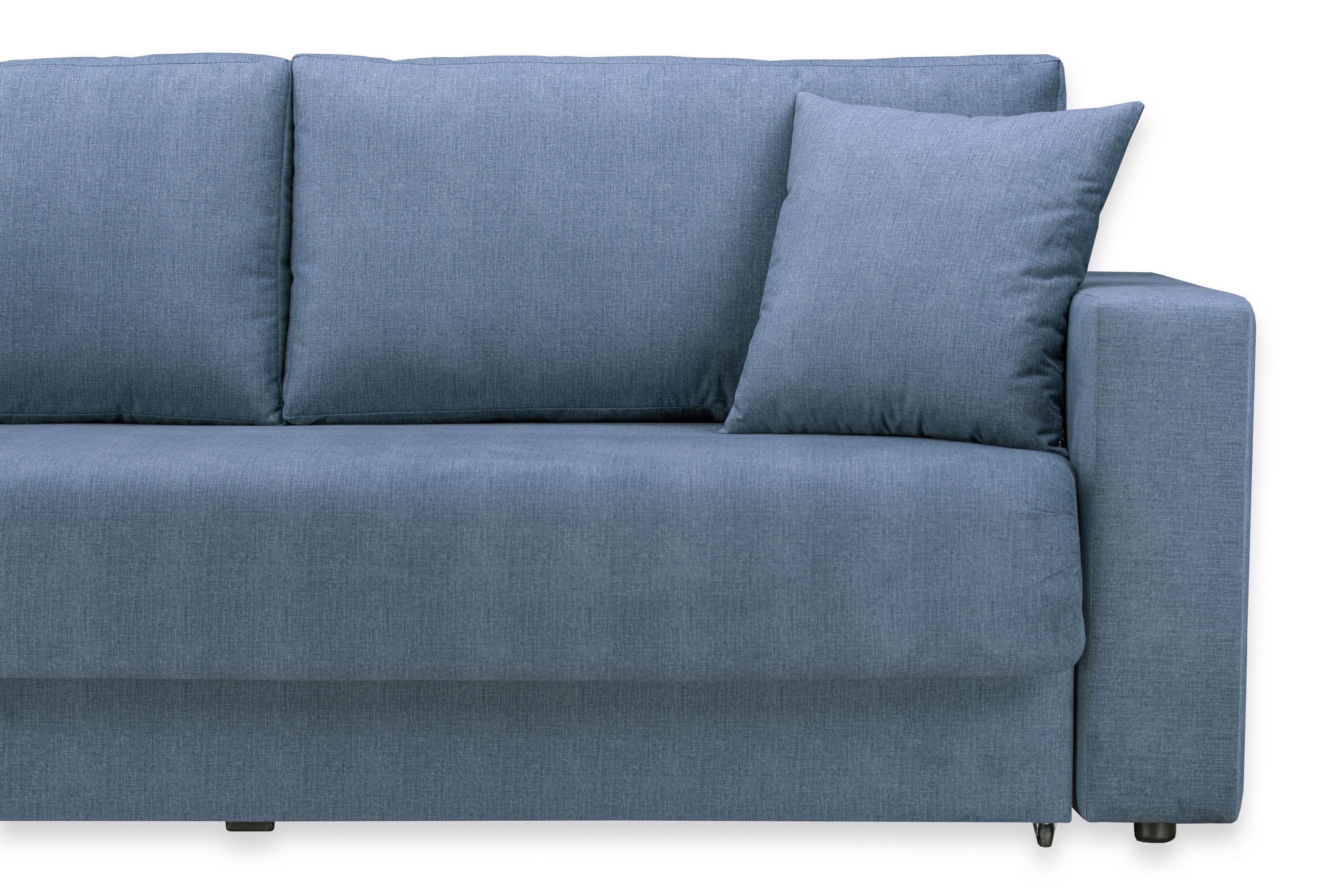 Диван-кровать «Ливерпуль Стандарт» трансформируется из положения диван в кровать с помощью механизма раскладывания Еврокнижка. Для того, чтобы разложить диван, нужно потянуть петлю сиденья на себя, затем опустить спинку дивана на ящик.