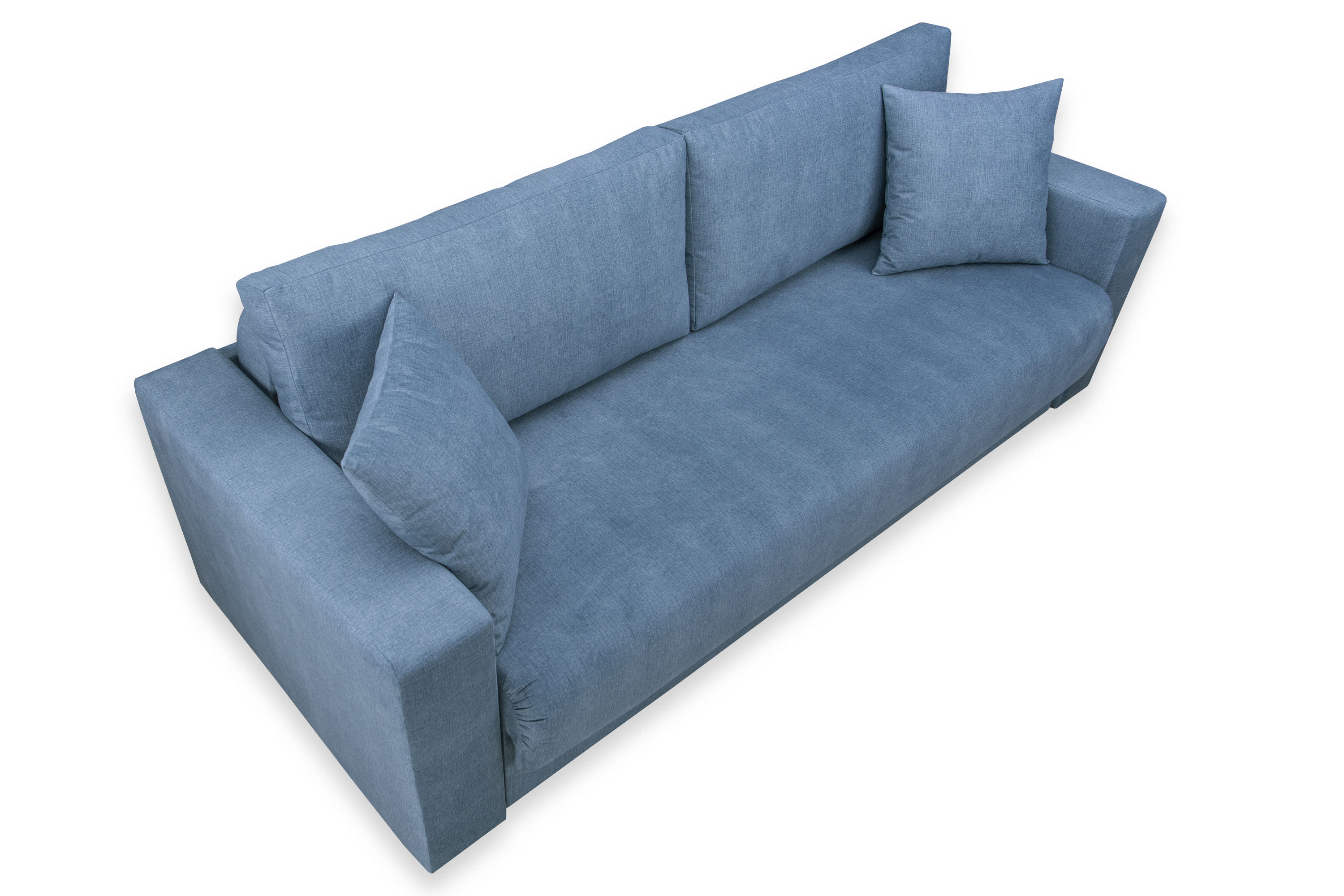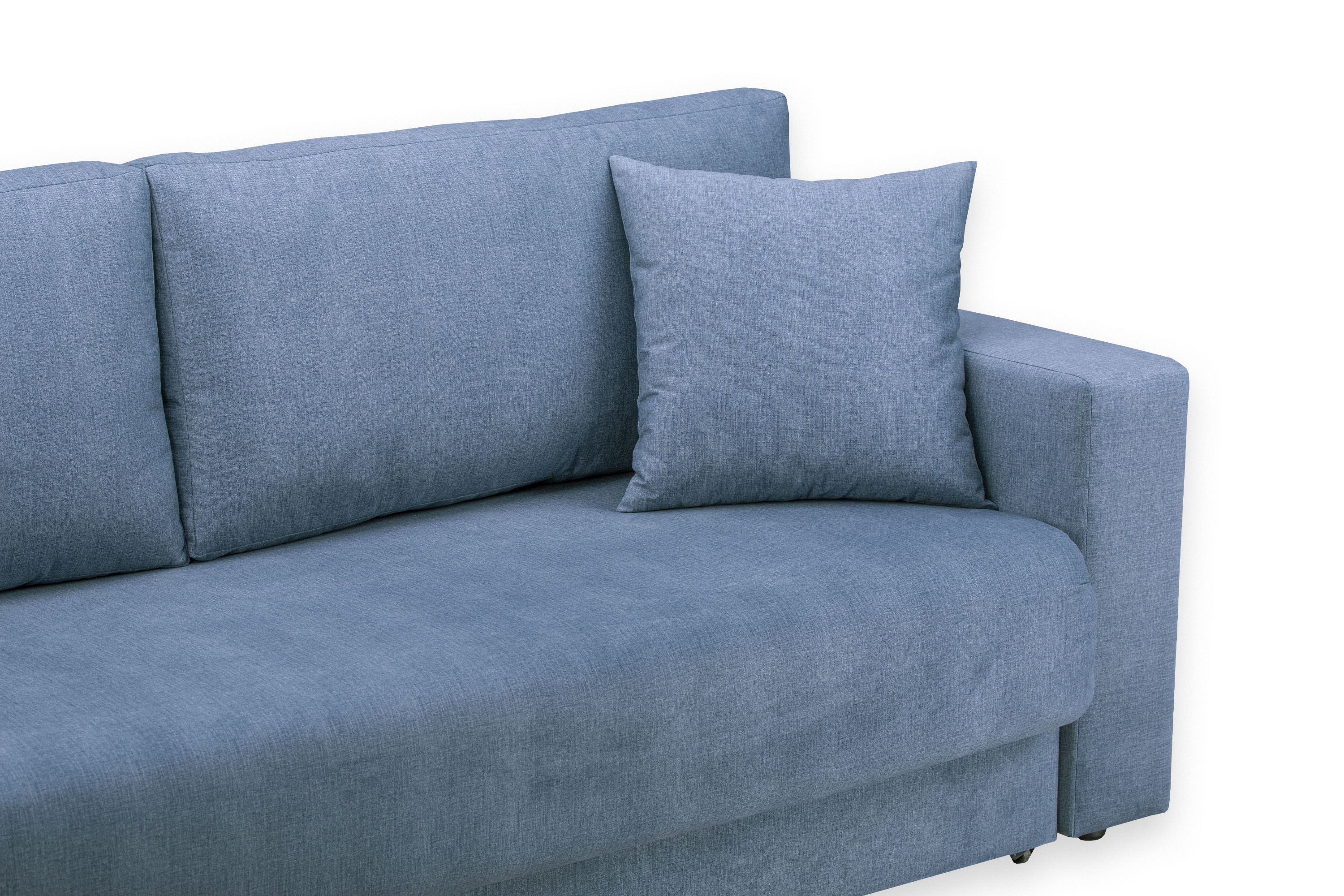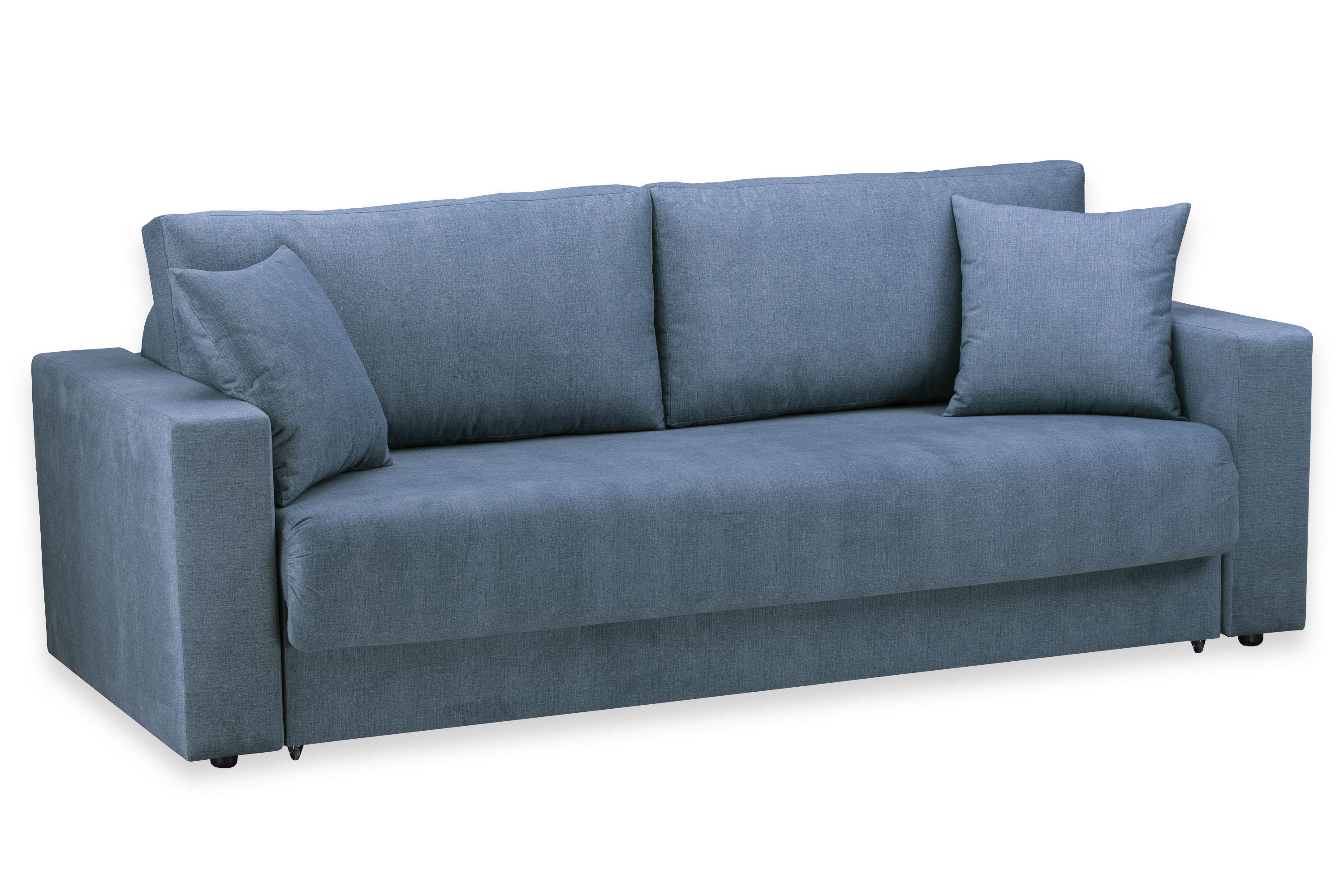 Диван-кровать «Ливерпуль Стандарт» трансформируется из положения диван в кровать с помощью механизма раскладывания Еврокнижка. Для того, чтобы разложить диван, нужно потянуть петлю сиденья на себя, затем опустить спинку дивана на ящик.