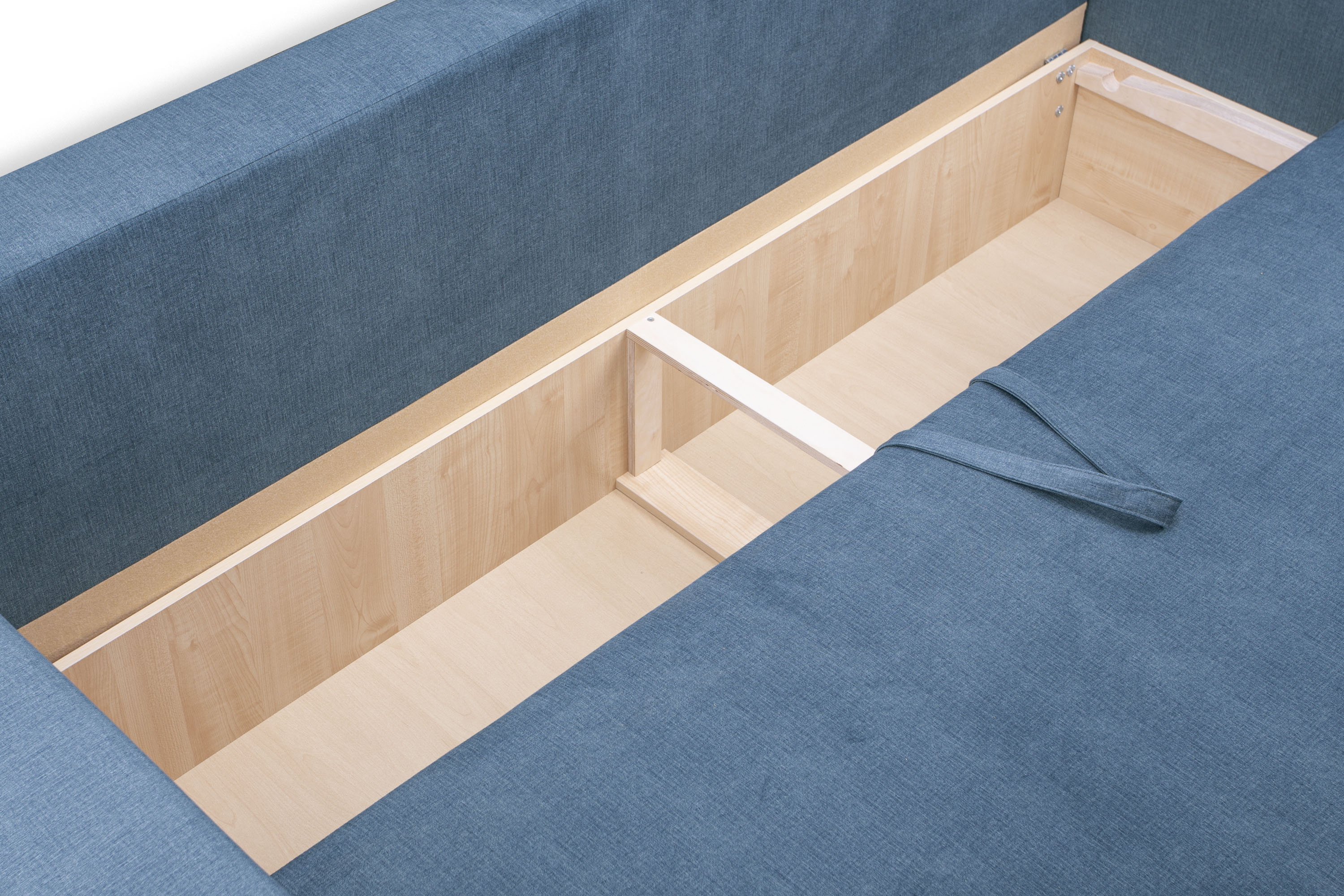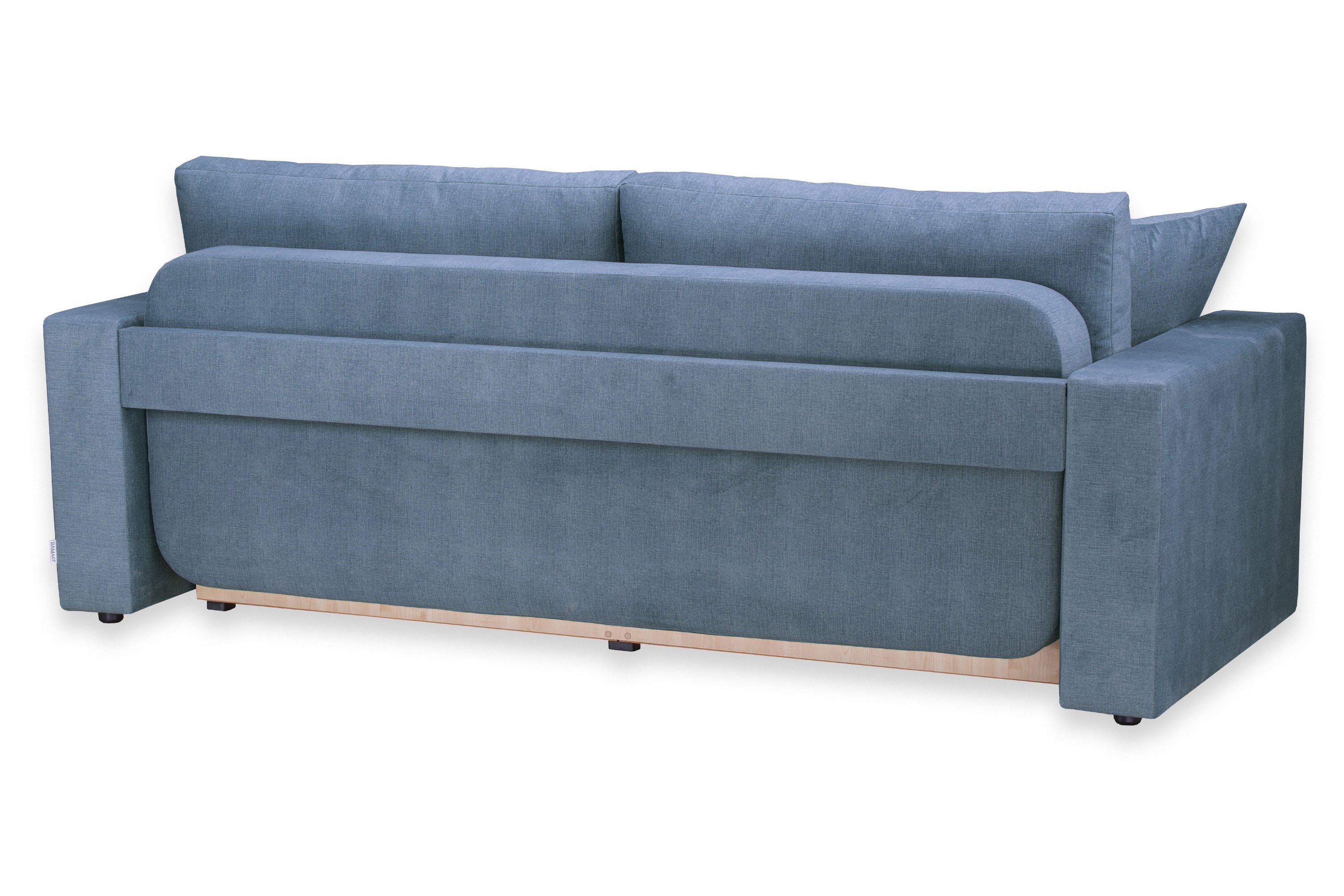 Каркас изготовлен из березовой фанеры, ламината, бруса. Задняя планка, соединяющая подлокотники, дает каркасу дивана дополнительную жесткость.