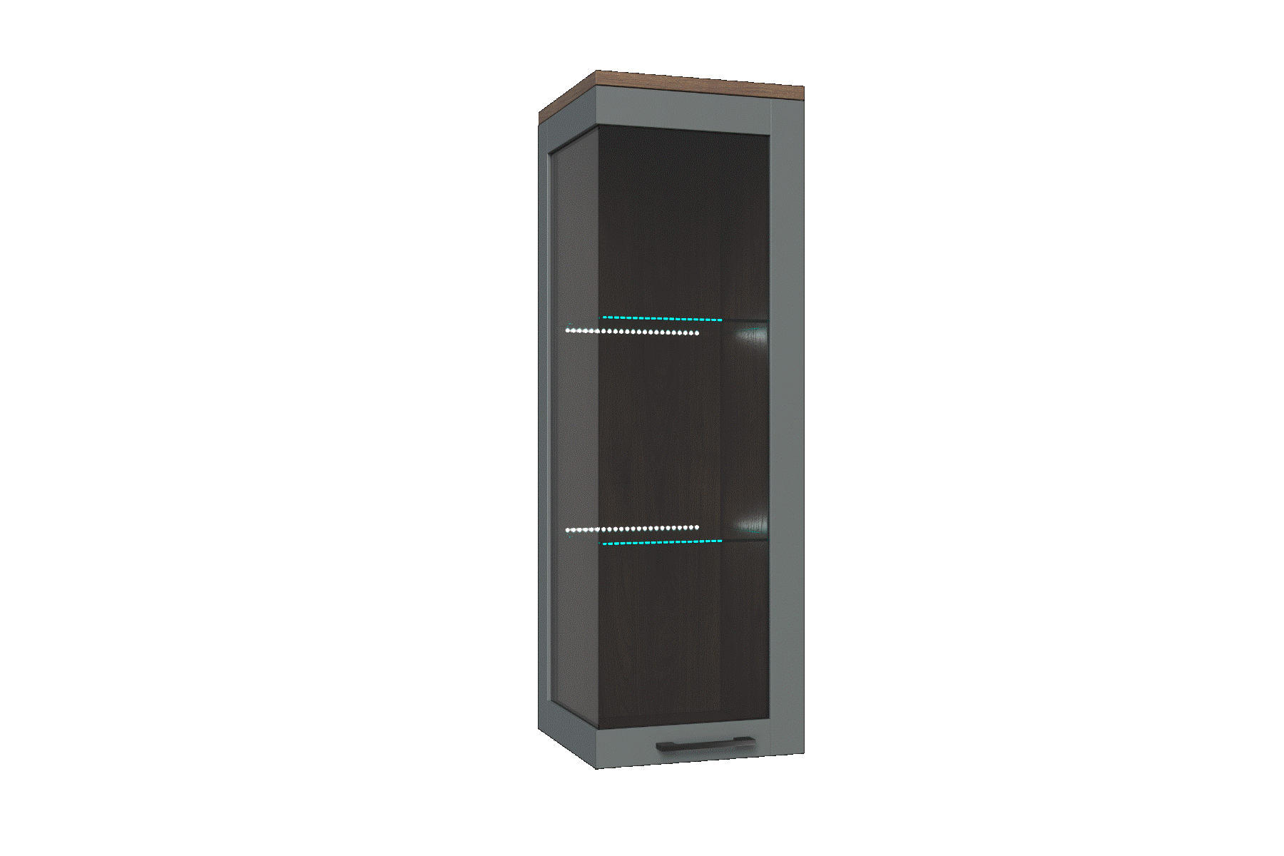 Интересная дизайнерская разработка со стеклянным фасадом и стеклянной боковой стенкой у витрин и антресольных секций стильно выделит интерьер уникальной композицией, а также позволит создавать уникальные буфетные варианты.