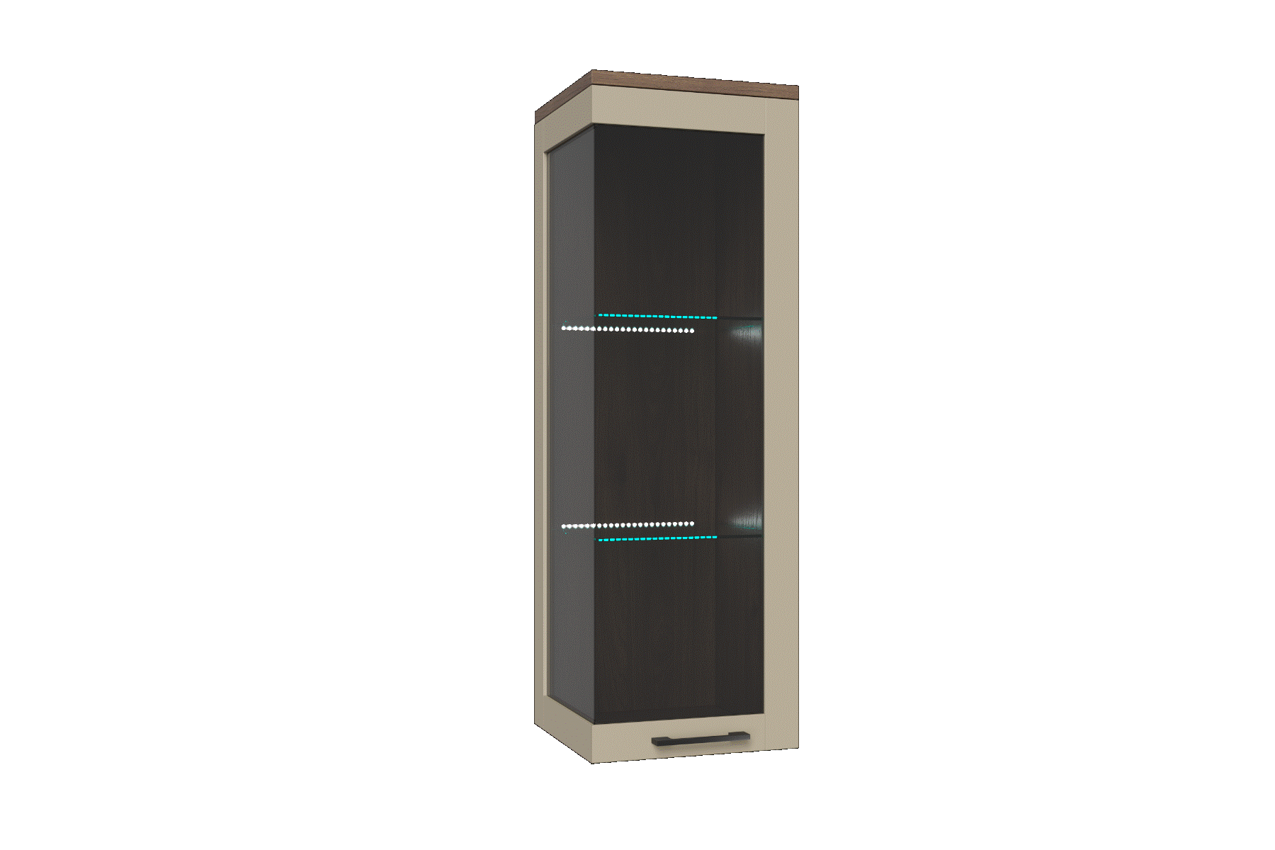 Интересная дизайнерская разработка со стеклянным фасадом и стеклянной боковой стенкой у витрин и антресольных секций стильно выделит интерьер уникальной композицией, а также позволит создавать уникальные буфетные варианты.