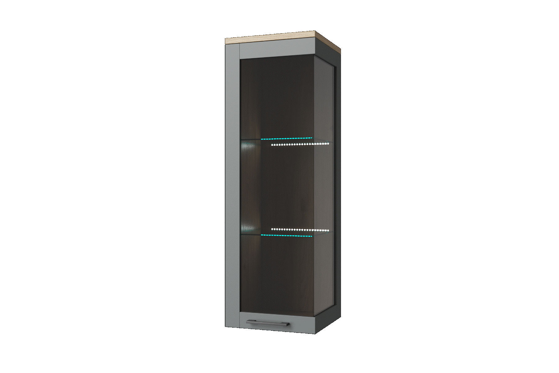 Интересная дизайнерская разработка со стеклянным фасадом и стеклянной боковой стенкой у витрин и антресольных секций стильно выделит интерьер уникальной композицией, а также позволит создавать уникальные буфетные варианты.