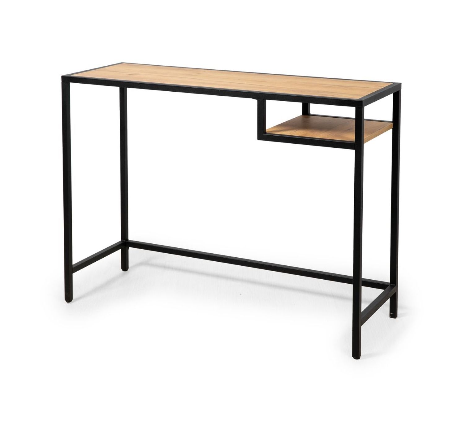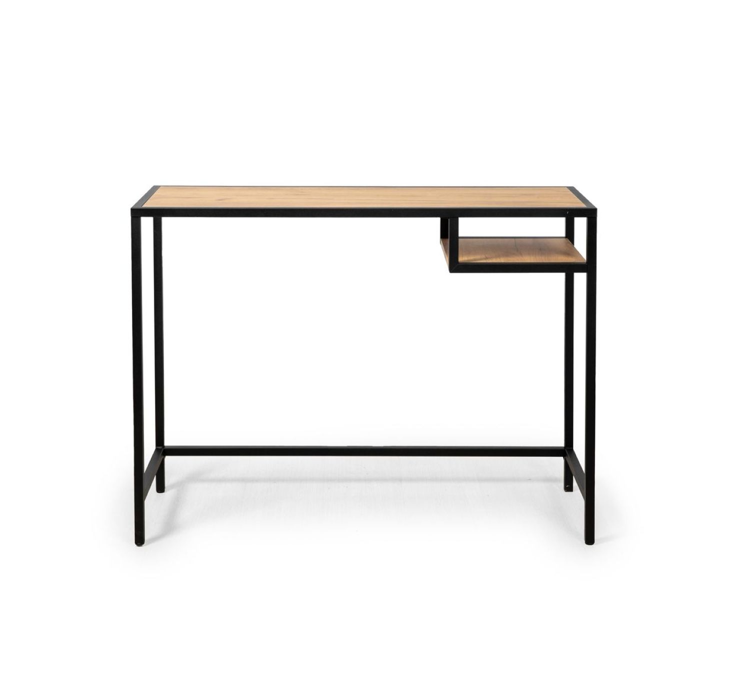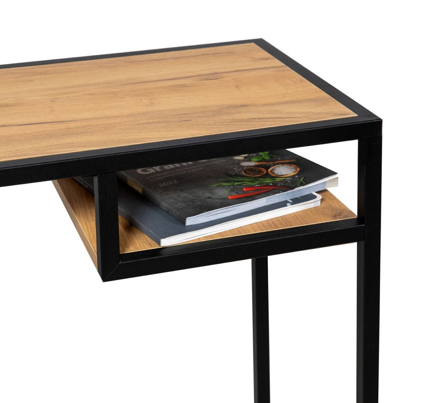 Конструкция с широкой столешницей и открытой полочкой для мелочей.