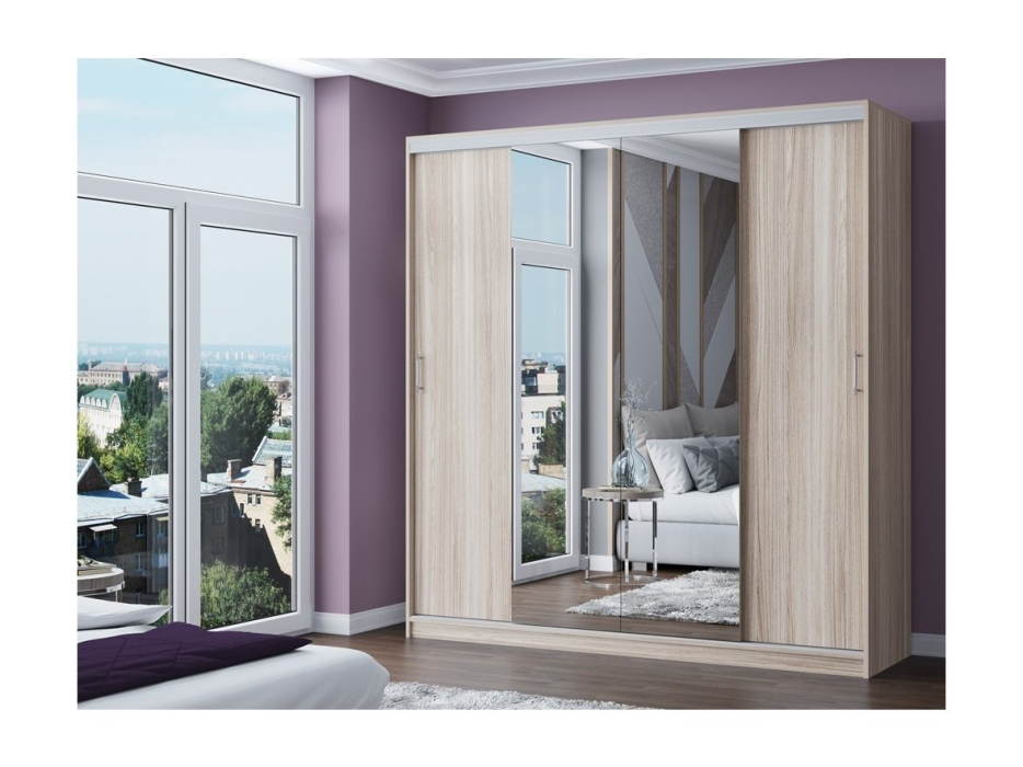 Шкаф-купе Альянс 3 — современный четырехдверный шкаф в стиле минимализма. Шкаф укомплектован зеркалами в полную высоту. Шкаф будет прекрасно смотреться как в прихожей, так и в спальне.