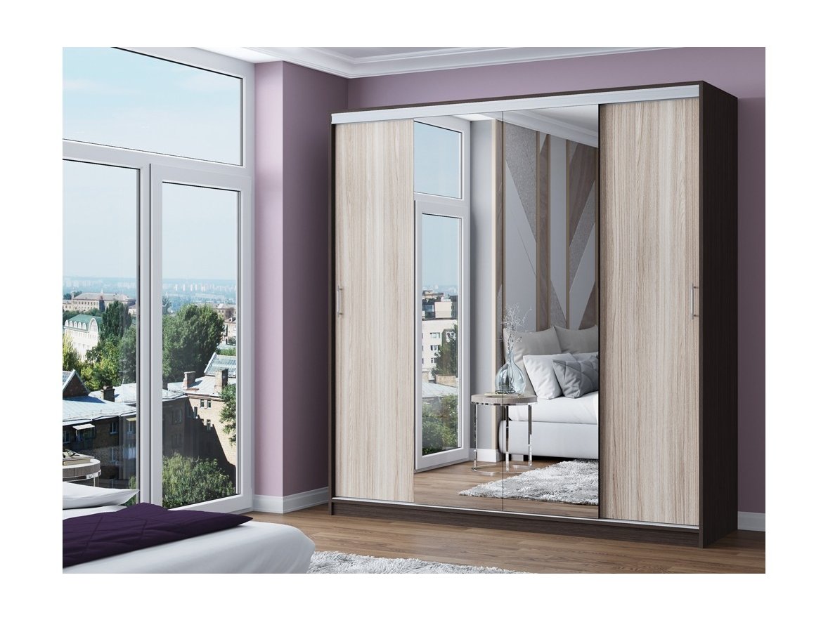 Шкаф-купе Альянс 3 — современный четырехдверный шкаф в стиле минимализма. Шкаф укомплектован зеркалами в полную высоту. Шкаф будет прекрасно смотреться как в прихожей, так и в спальне.