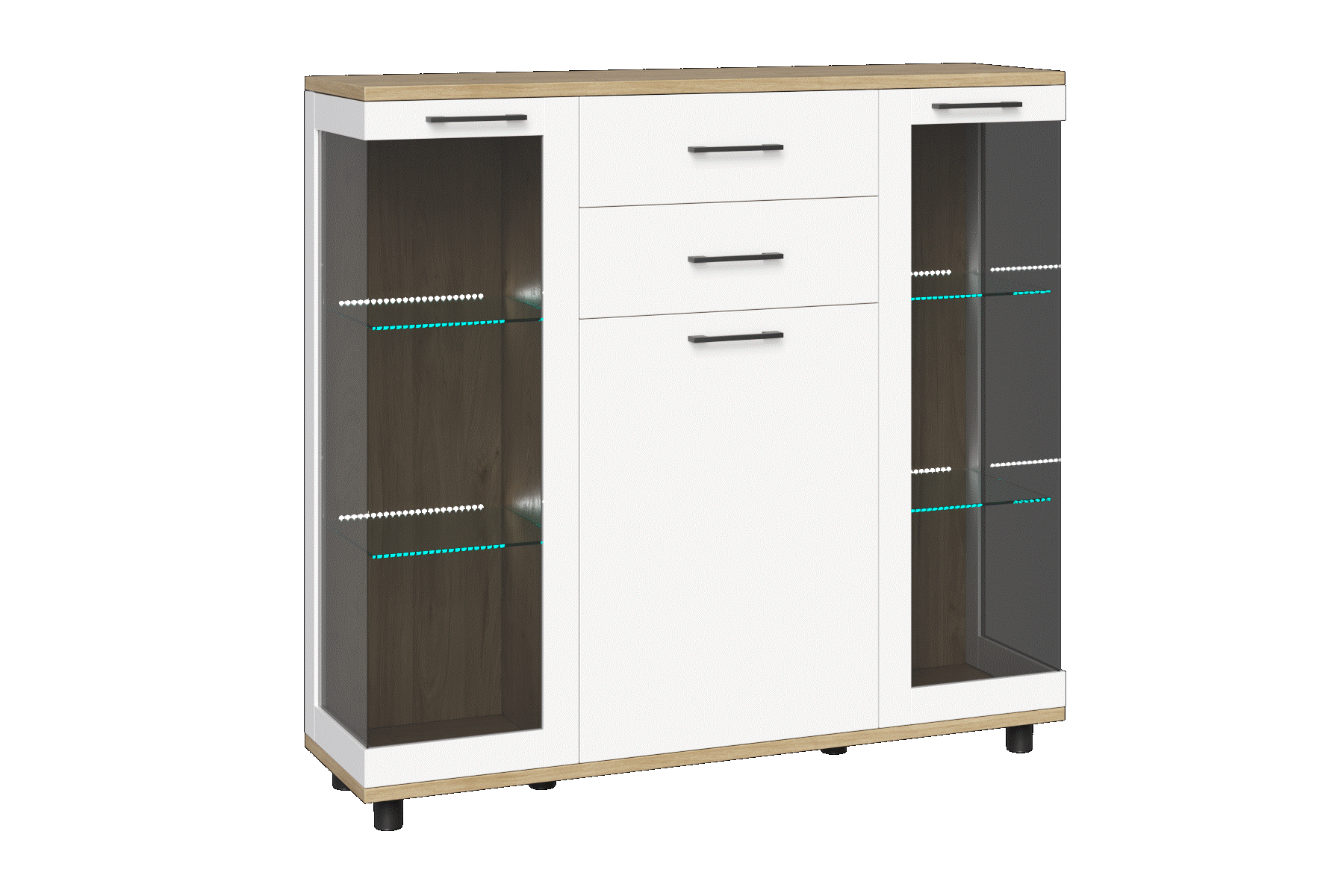 Интересная дизайнерская разработка со стеклянным фасадом и стеклянной боковой стенкой у витрин и антресольных секций стильно выделит интерьер уникальной композицией, а также позволит создавать уникальные буфетные варианты.