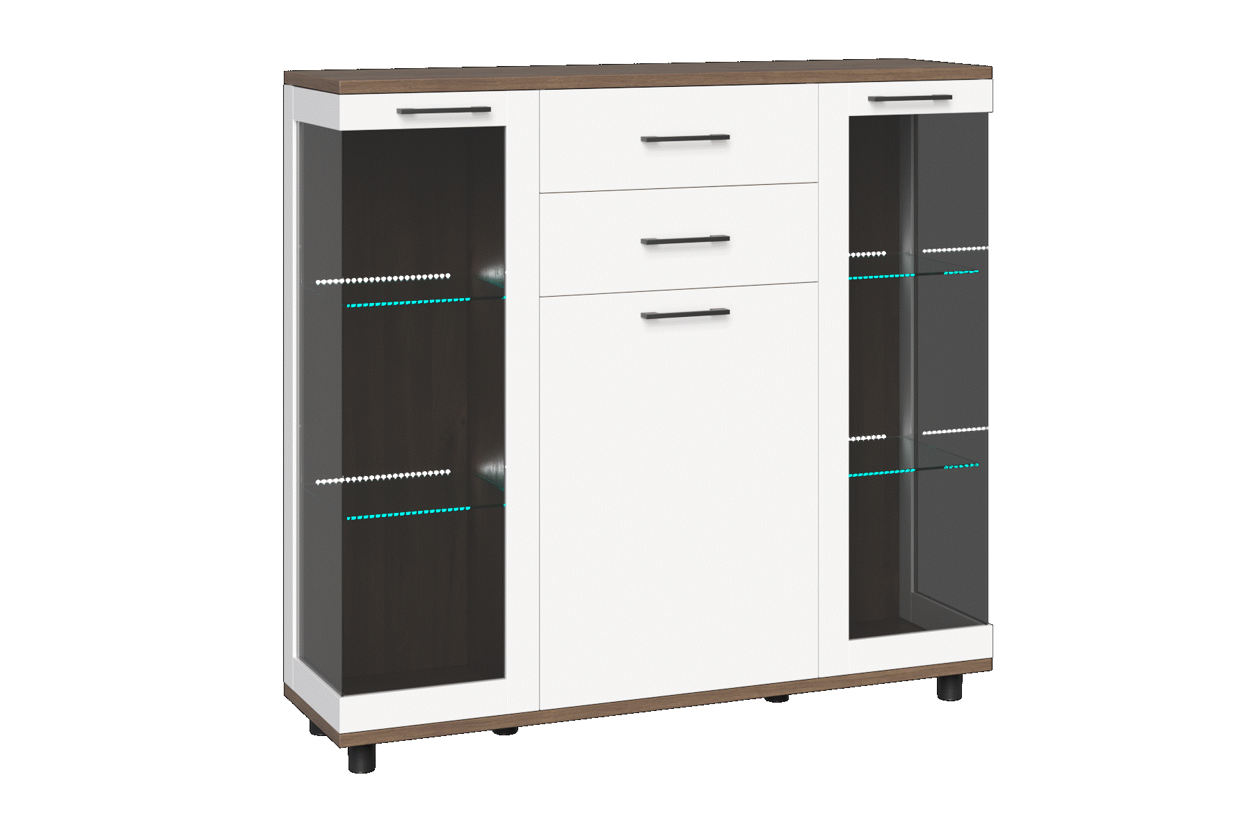 Интересная дизайнерская разработка со стеклянным фасадом и стеклянной боковой стенкой у витрин и антресольных секций стильно выделит интерьер уникальной композицией, а также позволит создавать уникальные буфетные варианты.