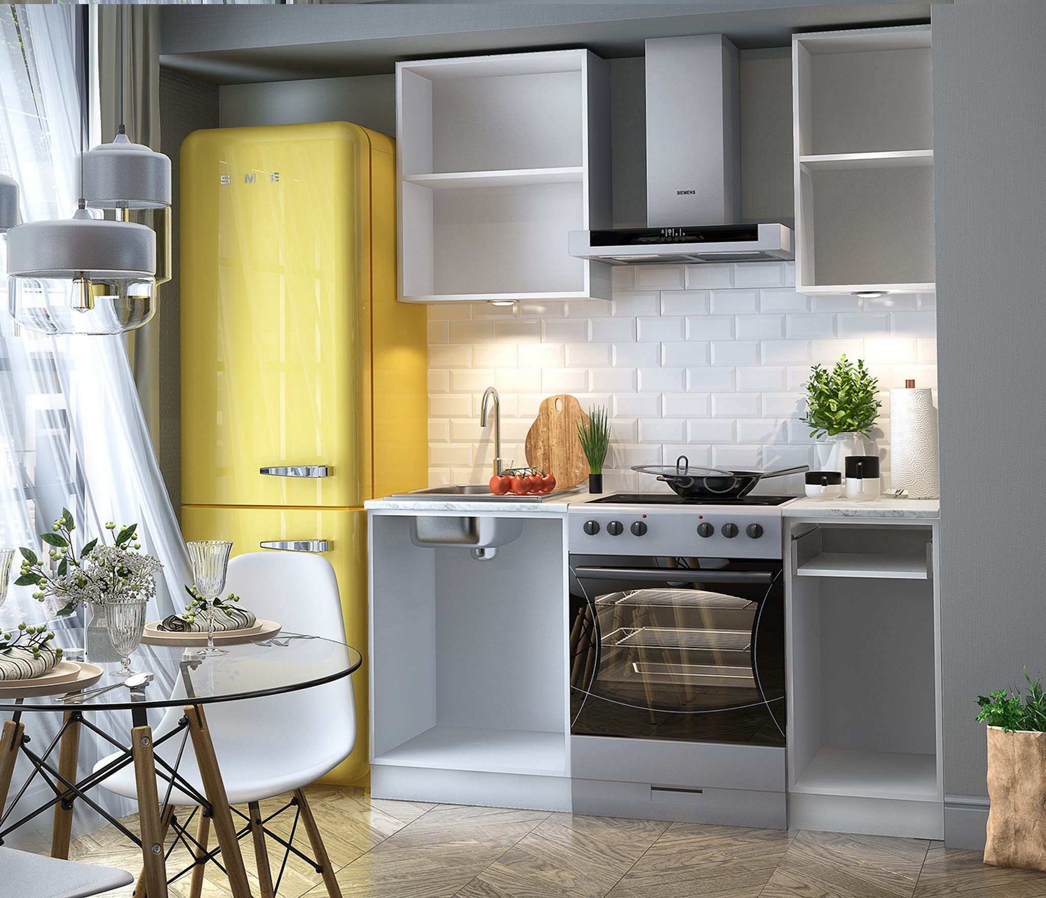 Длина данного исполнения всего 1 метр, что делает его идеальным выбором для ограниченных пространств. Размеры 100×215×60 см (не учитывая размера вытяжки и плиты) позволяют разместить необходимый минимум для организации кухонной зоны, не перегружая интерьер.