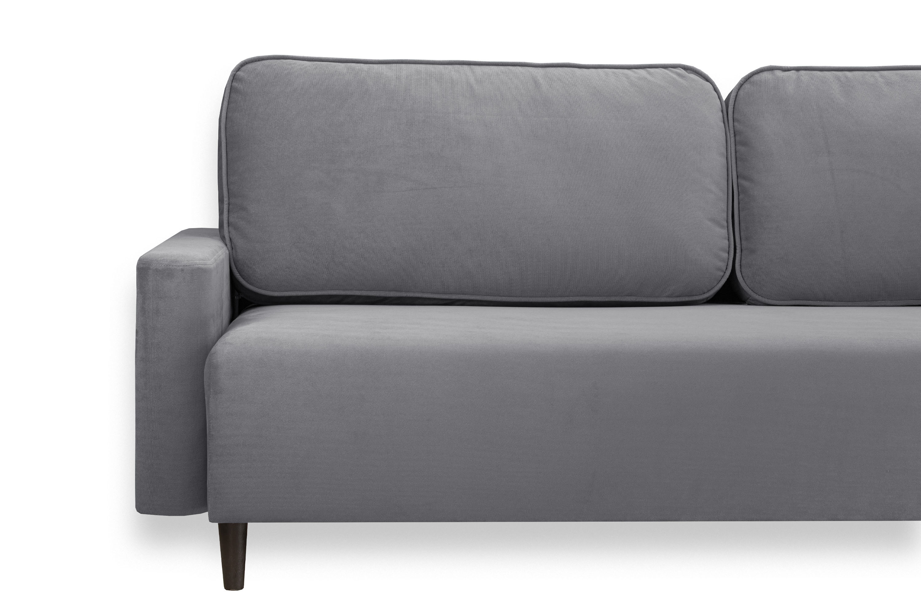 Диван укомплектован мягкими подушками. Наполнение подушек мягкое полиэфирное шариковолокно. Подушки хорошо держат форму, на них удобно облокотиться и отдохнуть. Чехлы съемные на молнии. Их легко снять и почистить.
