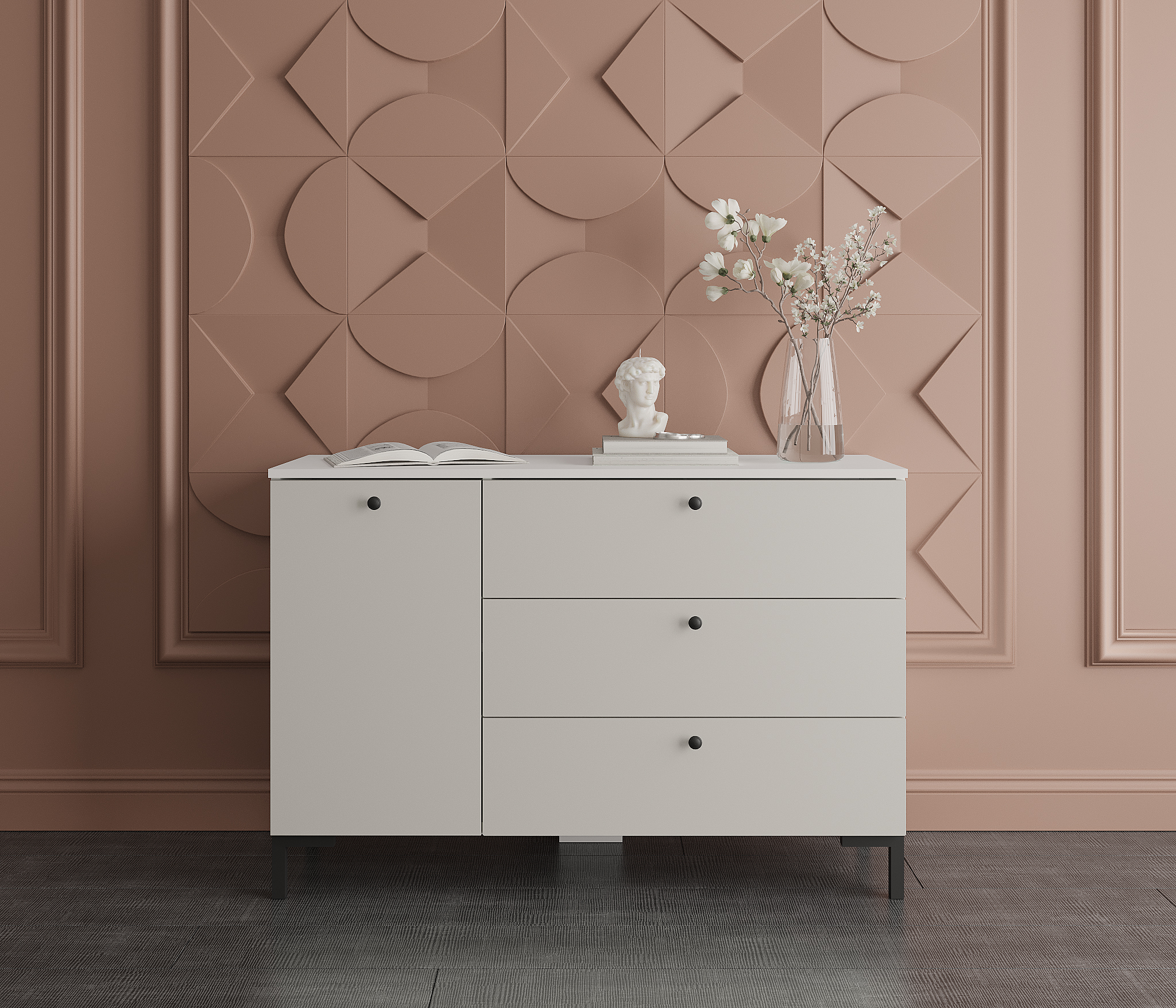 Отзывы о Столплит Комод Тренд СБ-3446 3 ящика, 1 дверь Белый Альпийский/Серый перламутровый
