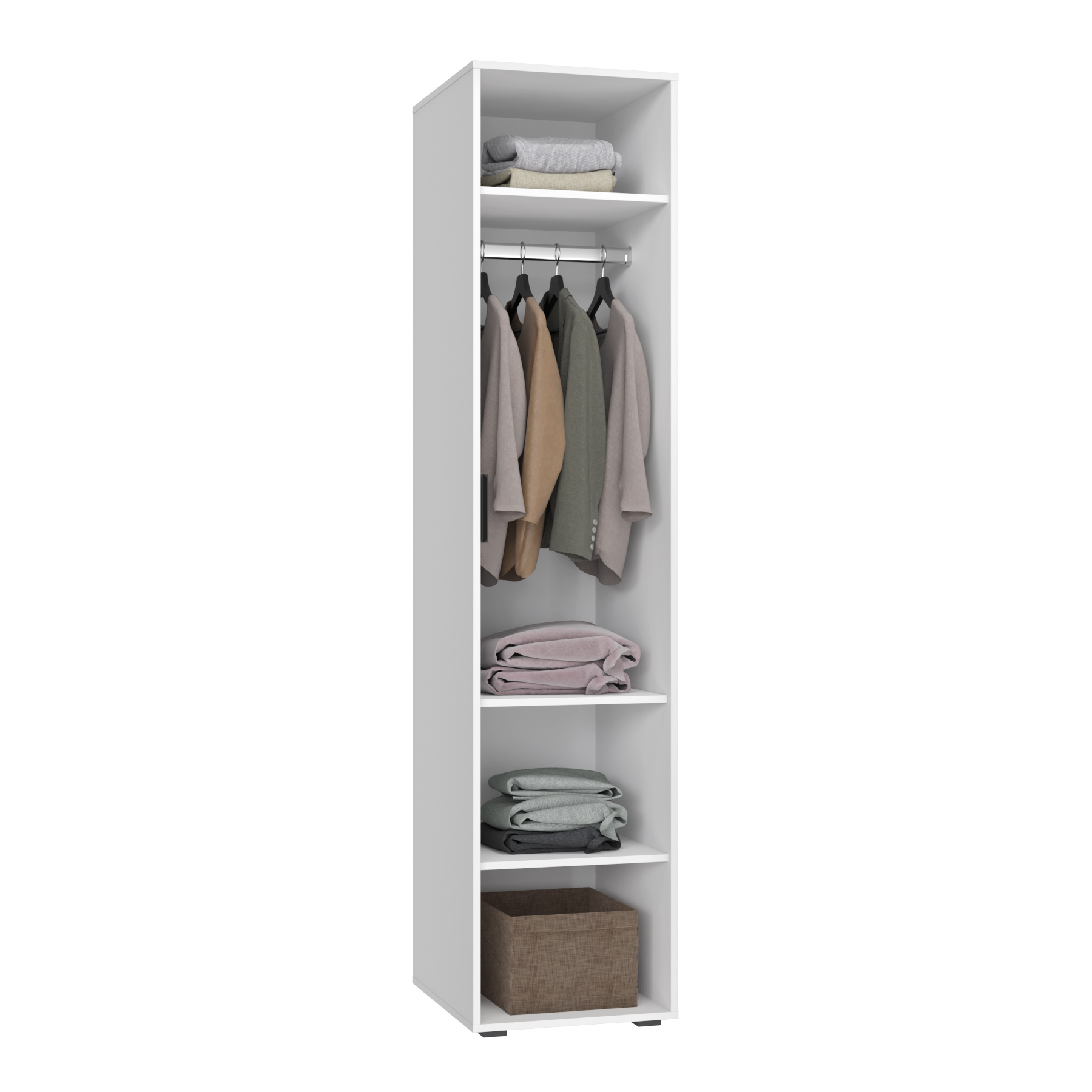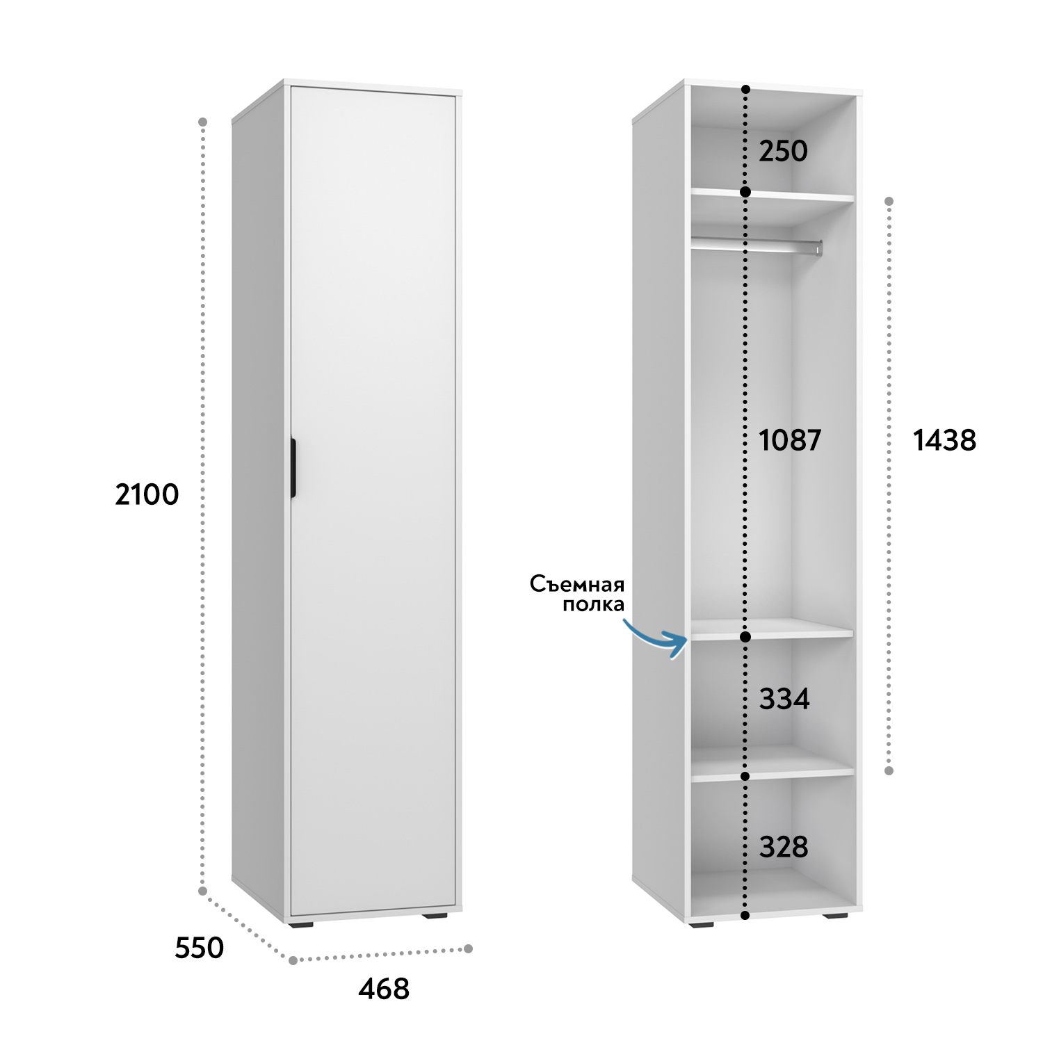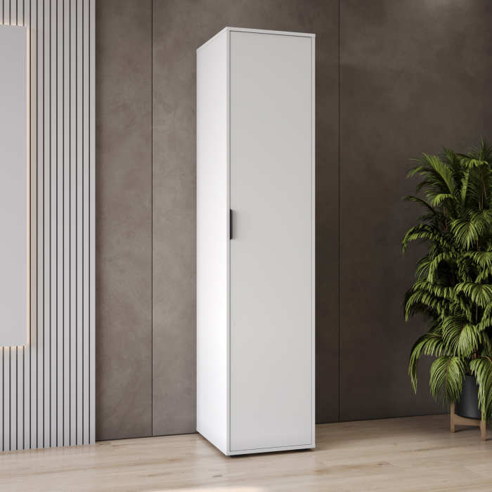 Пенал Оптима ОП-02 станет замечательным дополнением для обустройства комфортной и функциональной комнаты. За распашной дверью находятся штанга для вешалок-плечиков и три полки. Полки предназначены для хранения сложенной одежды, белья, различных аксессуаров и коробок с обувью. Модуль может быть собран "левым" или "правым". Высота опоры 20 мм. Фурнитура: петли с доводчиками, ручка металл, опоры регулируемые.