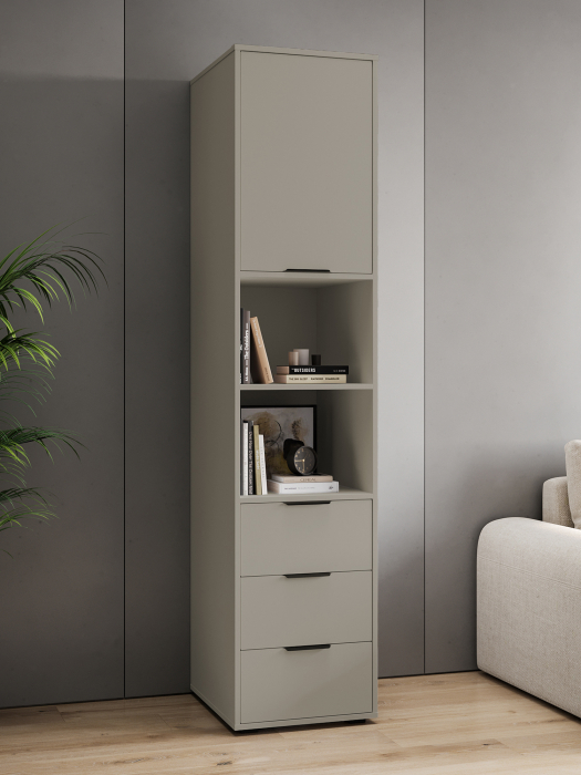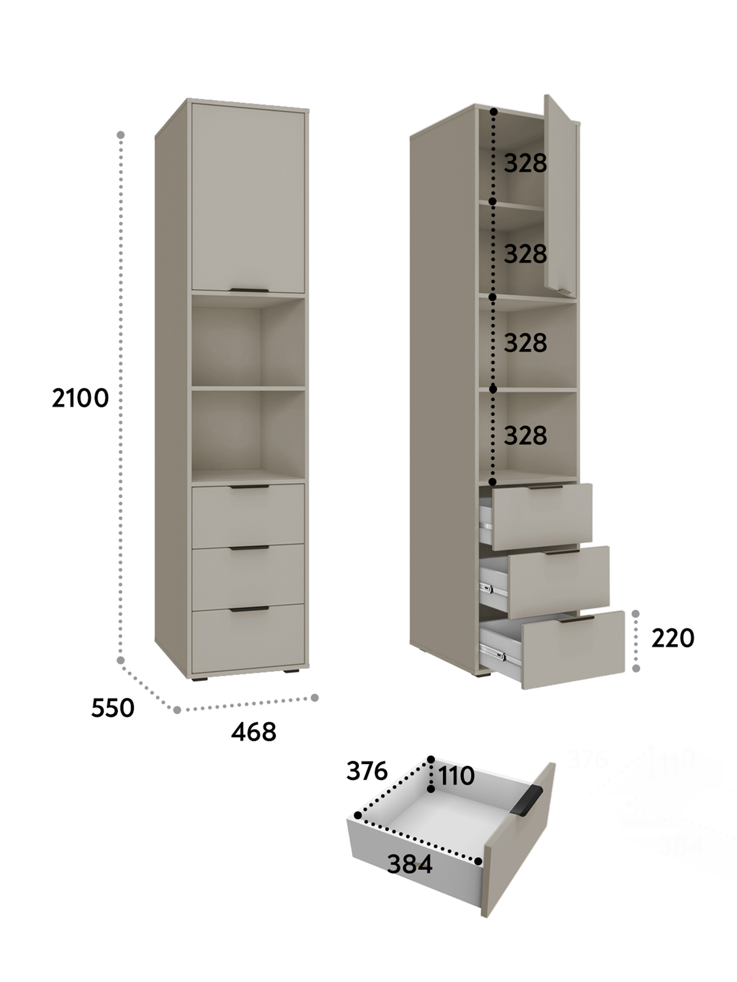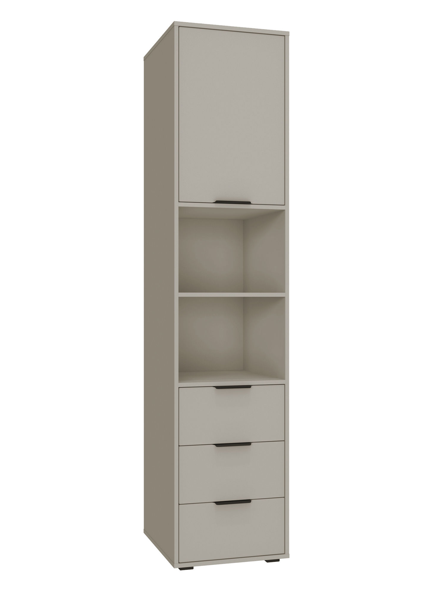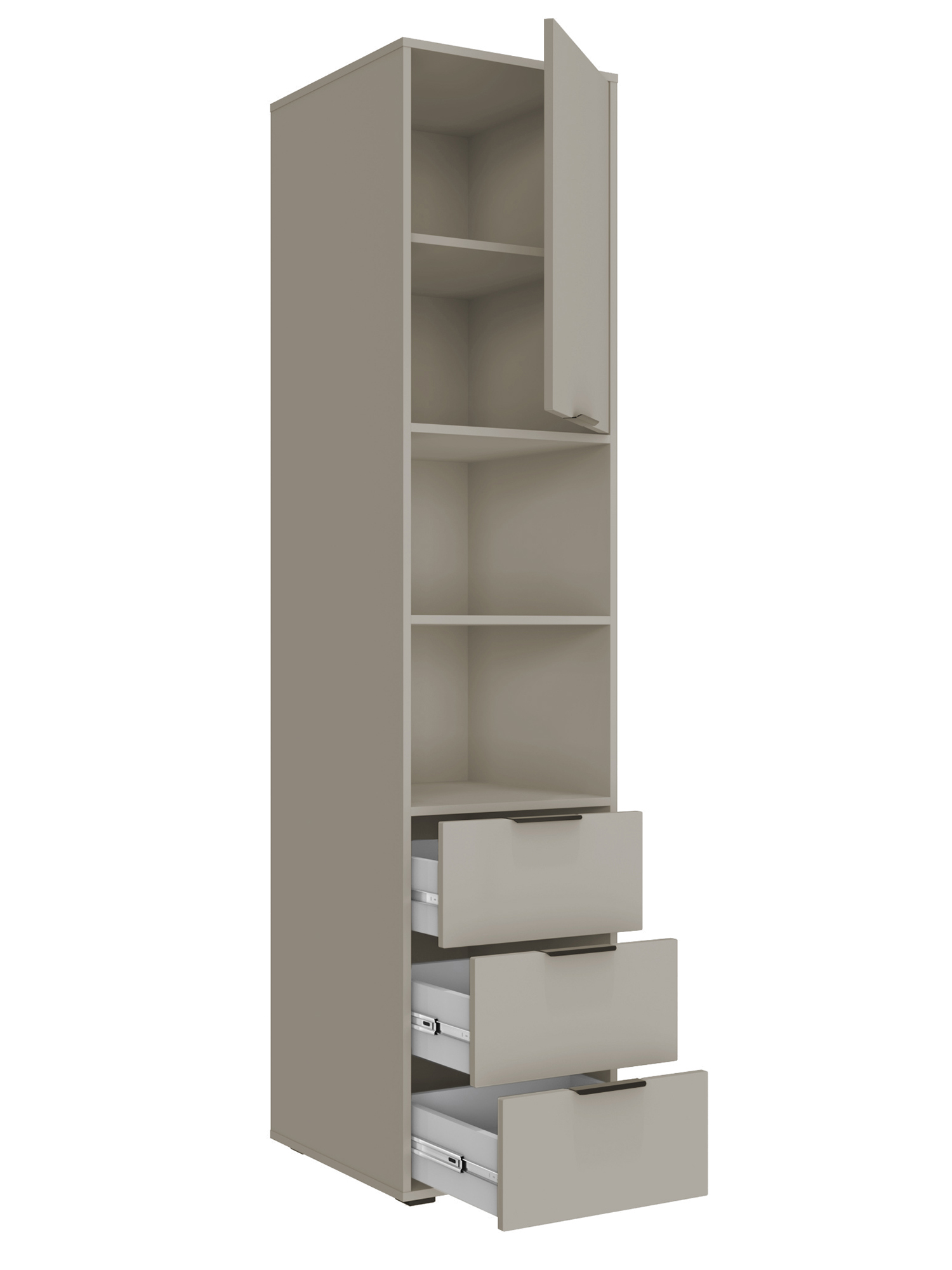 Пенал Оптима ОП-03 станет замечательным дополнением для обустройства комфортной и функциональной комнаты. Наполнение пенала три полки и три выдвижных ящика. Полки предназначены для хранения сложенной одежды, белья, различных аксессуаров. Модуль может быть собран только "правым". Высота опоры 20 мм. Фурнитура: петли с доводчиками, ручки металл, телескопические направляющие полного выдвижения без доводчиков, опоры регулируемые.