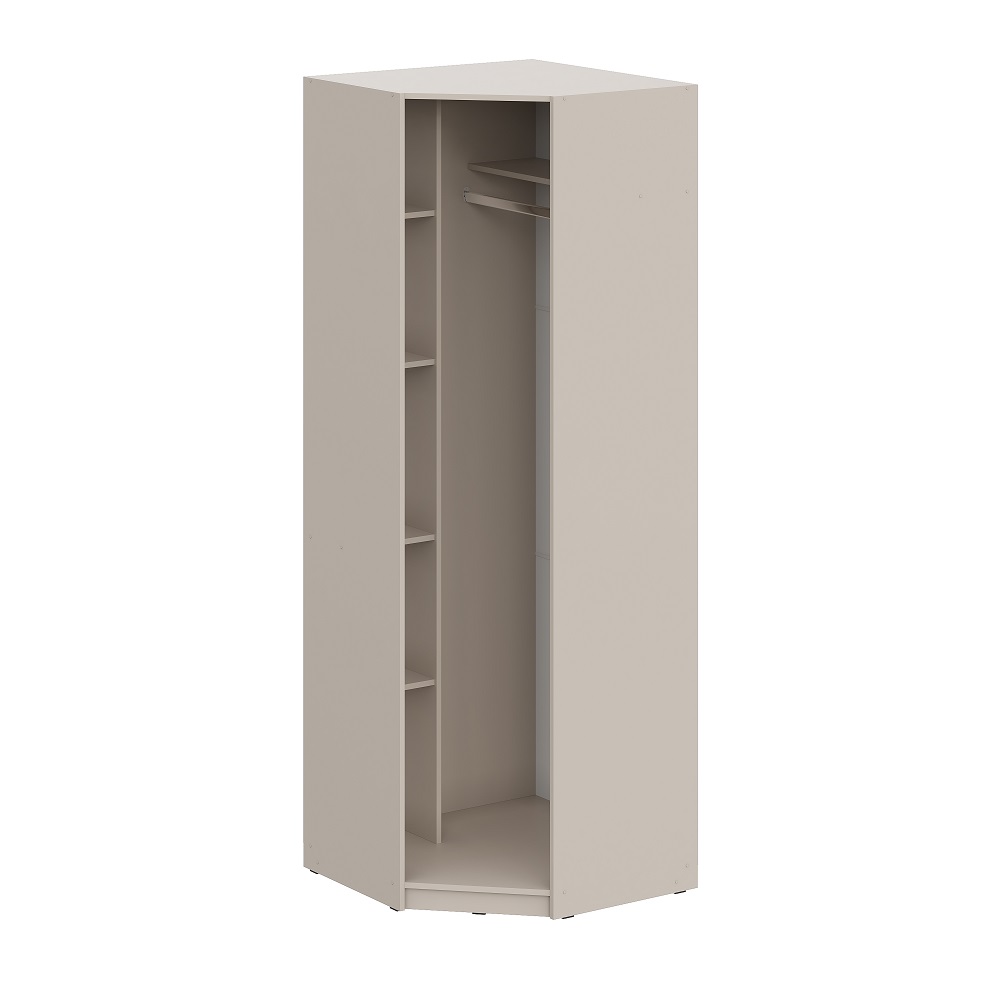 Шкаф угловой ШК 5 - это настоящая эстетика минимализма. Строгие линии, спокойная цветовая гамма идеально впишутся в современный дизайн комнаты. Функциональное внутреннее наполнение из стационарной штанги и полок позволит разместить белье, одежду и аксессуары в одном месте, грамотно использовав пространство комнаты. При необходимости к шкафу стыкуются другие модули из коллекции ШК 5.