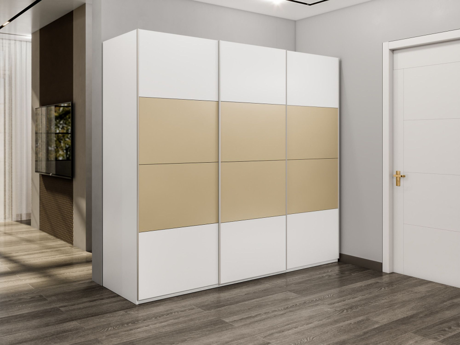 Шкаф-купе Эста 3-х дверный ДСП/Стекла фисташка/Доводчик 300х66х240 (Белый) Код I0000408419