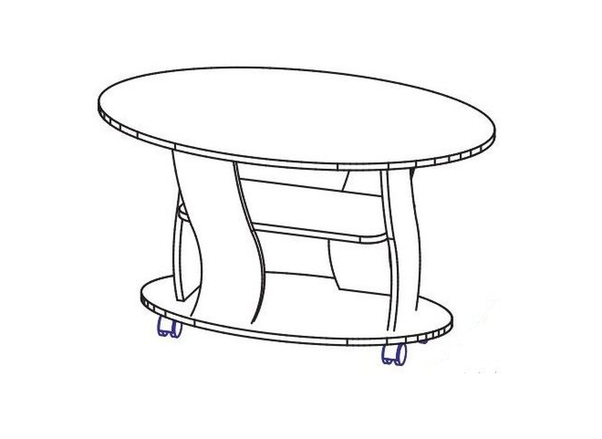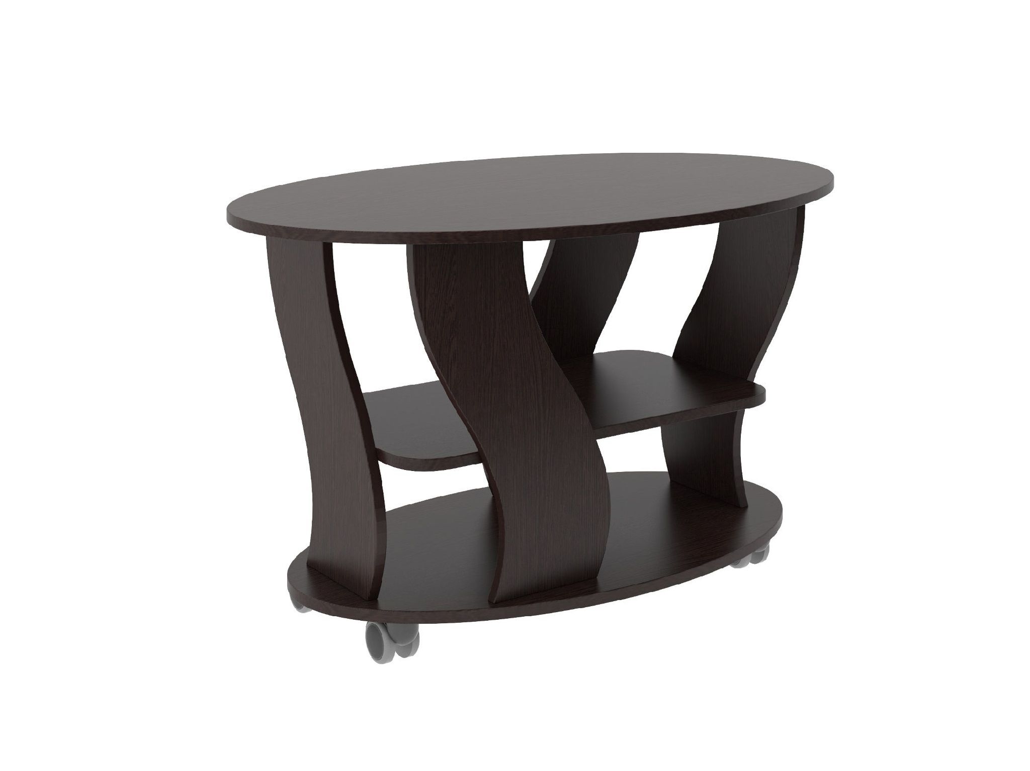 Престиж 4 - простой, маневренный журнальный столик с овальной столешницей, дополнительной полкой и установленный на колесики украсит собой любую гостиную.