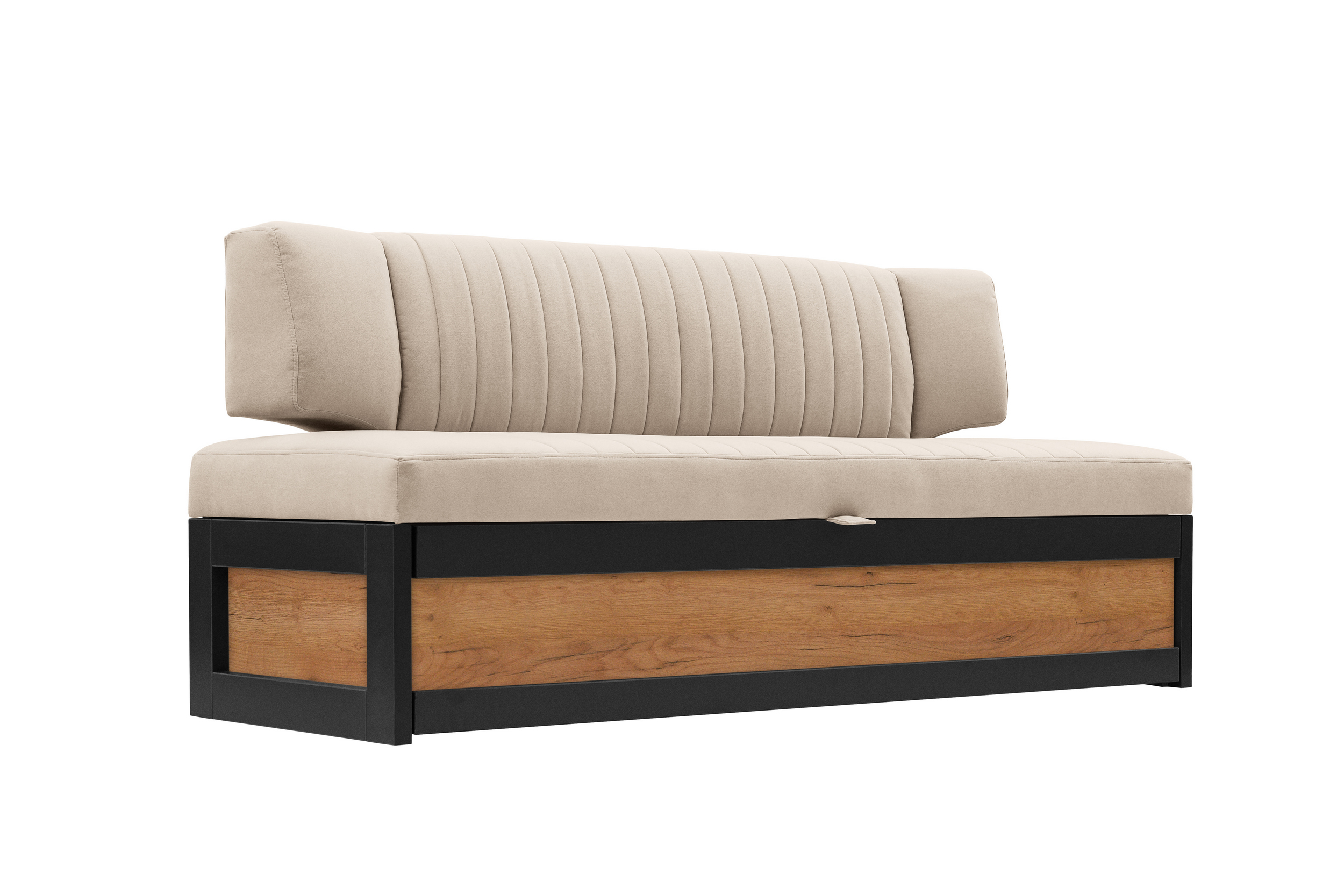 Диван Парус оснащен механизмом раскладывания "дельфин", который позволяет легко трансформировать его в полноценное спальное место. Практичность модели подчеркивается наличием вместительных ящиков для белья и скрытых отделений для хранения, что делает его незаменимым помощником в управлении домашним пространством.