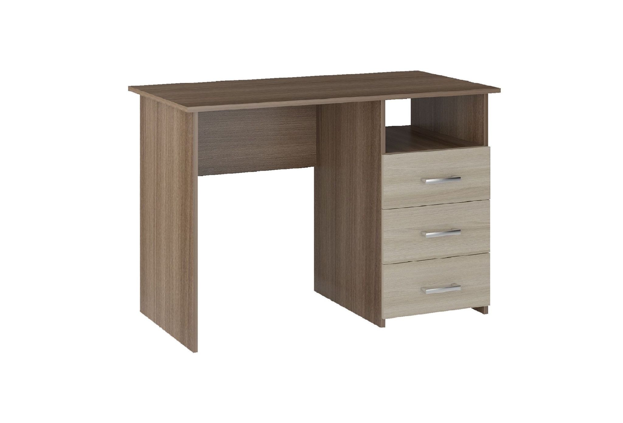 Интел-3 стол письменный имеет широкую столешницу, тумбу с ящиками и открытую нишу. Главным отличием от компьютерного стола является отсутствие подстолья и полки под клавиатуру.