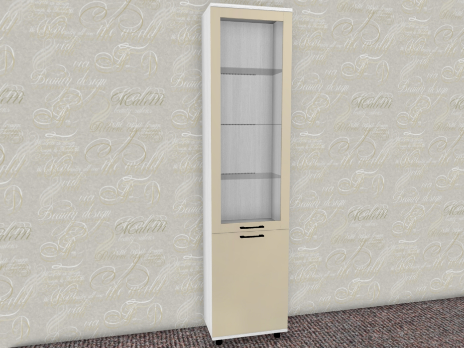 Интересная дизайнерская разработка со стеклянным фасадом и стеклянной боковой стенкой у витрин и антресольных секций стильно выделит интерьер уникальной композицией, а также позволит создавать уникальные буфетные варианты.
