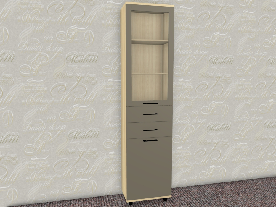 Интересная дизайнерская разработка со стеклянным фасадом и стеклянной боковой стенкой у витрин и антресольных секций стильно выделит интерьер уникальной композицией, а также позволит создавать уникальные буфетные варианты.