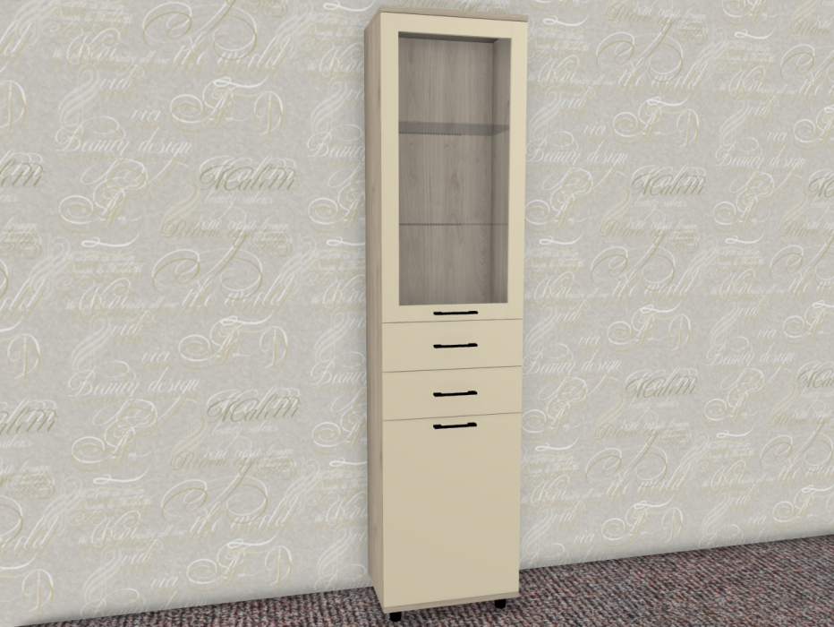 Интересная дизайнерская разработка со стеклянным фасадом и стеклянной боковой стенкой у витрин и антресольных секций стильно выделит интерьер уникальной композицией, а также позволит создавать уникальные буфетные варианты.