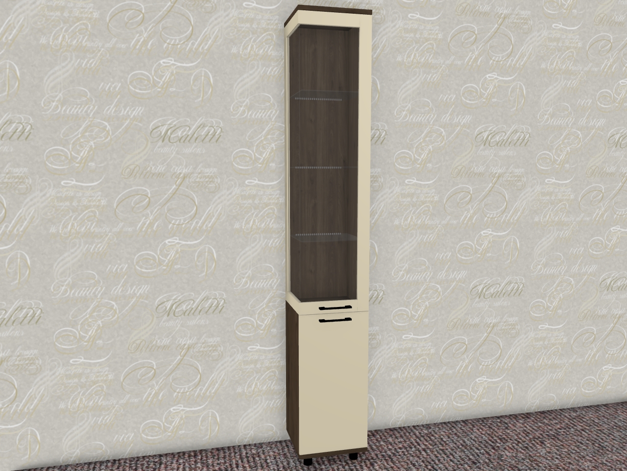 Интересная дизайнерская разработка со стеклянным фасадом и стеклянной боковой стенкой у витрин и антресольных секций стильно выделит интерьер уникальной композицией, а также позволит создавать уникальные буфетные варианты.