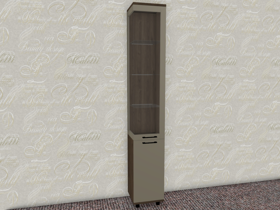 Интересная дизайнерская разработка со стеклянным фасадом и стеклянной боковой стенкой у витрин и антресольных секций стильно выделит интерьер уникальной композицией, а также позволит создавать уникальные буфетные варианты.