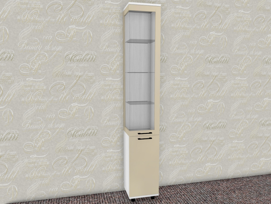 Интересная дизайнерская разработка со стеклянным фасадом и стеклянной боковой стенкой у витрин и антресольных секций стильно выделит интерьер уникальной композицией, а также позволит создавать уникальные буфетные варианты.