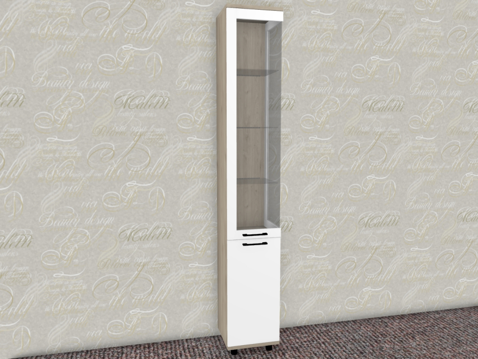 Интересная дизайнерская разработка со стеклянным фасадом и стеклянной боковой стенкой у витрин и антресольных секций стильно выделит интерьер уникальной композицией, а также позволит создавать уникальные буфетные варианты.