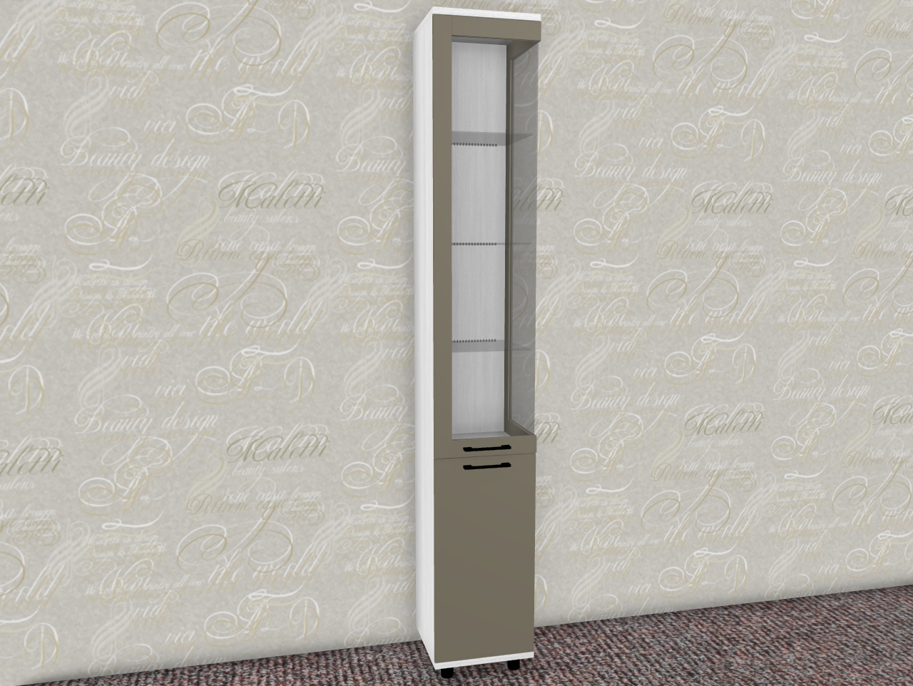 Интересная дизайнерская разработка со стеклянным фасадом и стеклянной боковой стенкой у витрин и антресольных секций стильно выделит интерьер уникальной композицией, а также позволит создавать уникальные буфетные варианты.