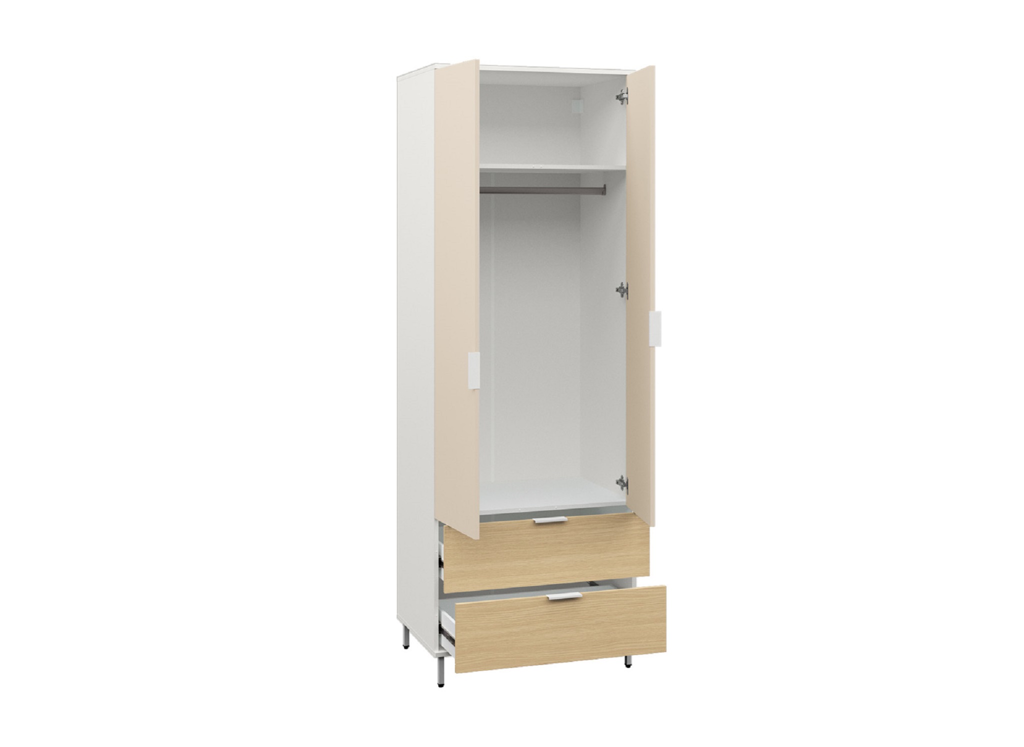 Двухдверный шкаф с 2-мя выдвижными ящиками. Ящики устанавливаются на направляющие полного выдвижения.