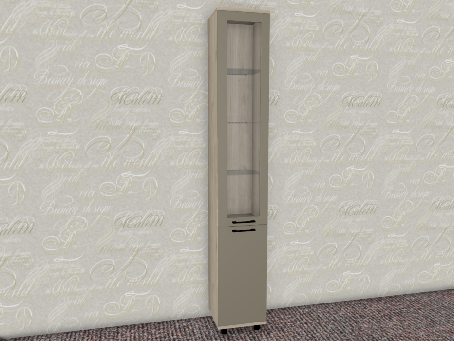 Интересная дизайнерская разработка со стеклянным фасадом и стеклянной боковой стенкой у витрин и антресольных секций стильно выделит интерьер уникальной композицией, а также позволит создавать уникальные буфетные варианты.